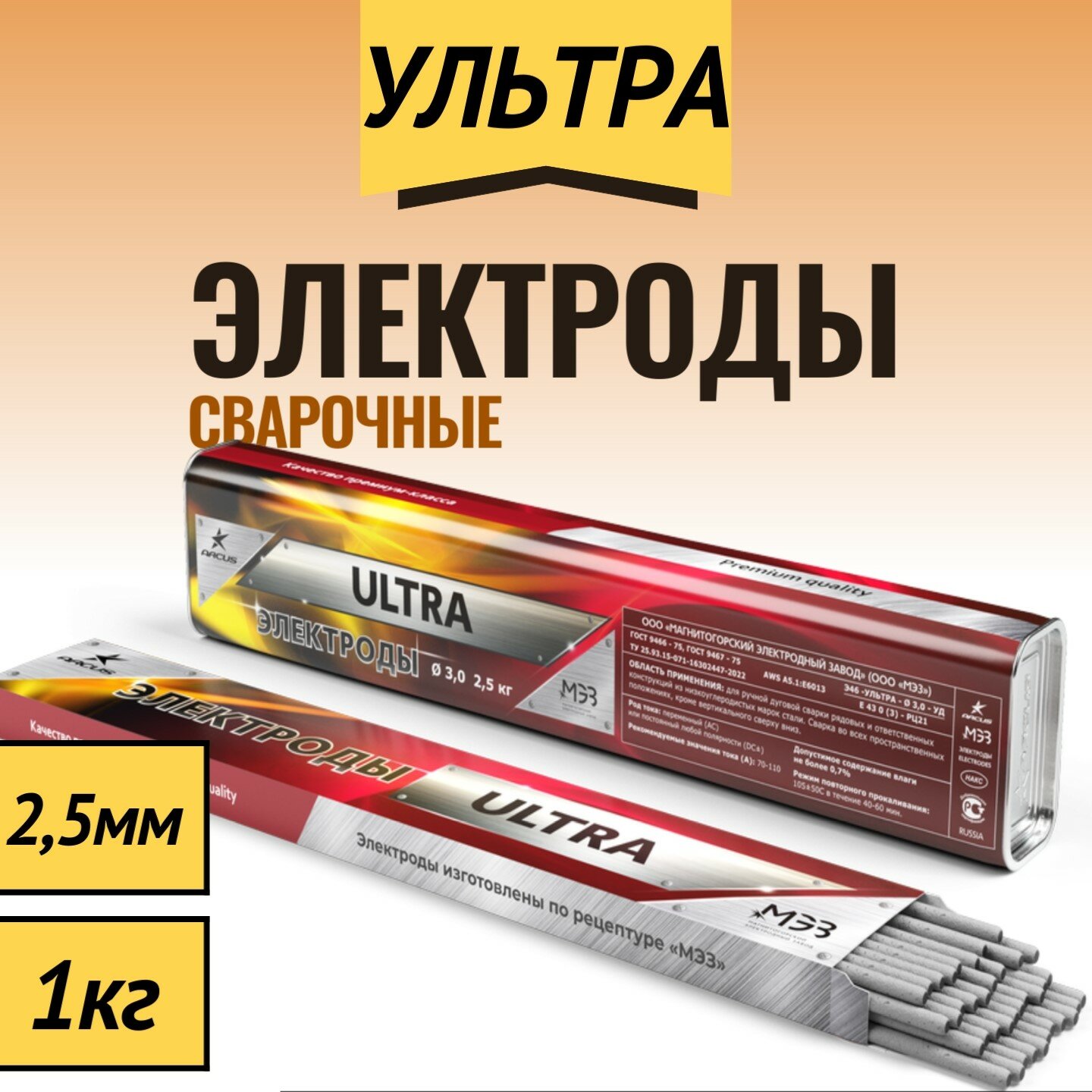 Сварочные электроды ультра 2,5мм 1кг ARCUS (МЭЗ)