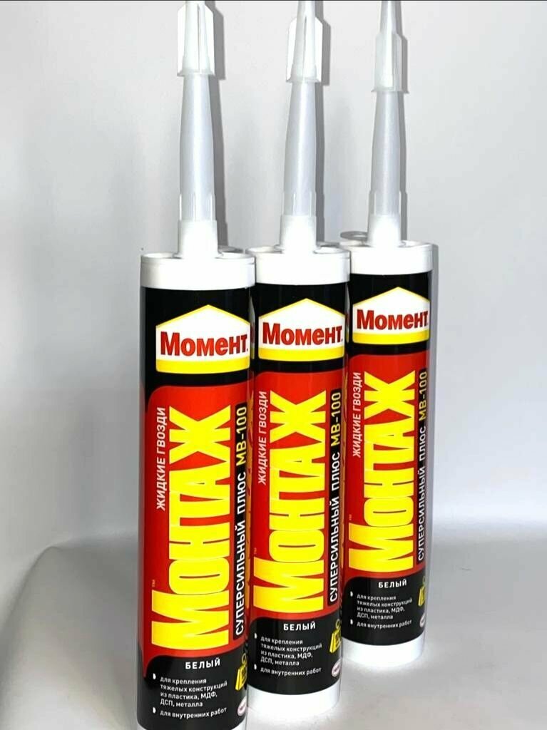 Ниже Вы можете прочитать отзывы на Монтажный клей Момент Монтаж Суперсильный Плюс МВ-100, 12 шт., ознакомится с подробными характеристиками, посмотреть интересные обзоры и фотографии на Монтажный клей Момент Монтаж Суперсильный Плюс МВ-100, 12 шт..