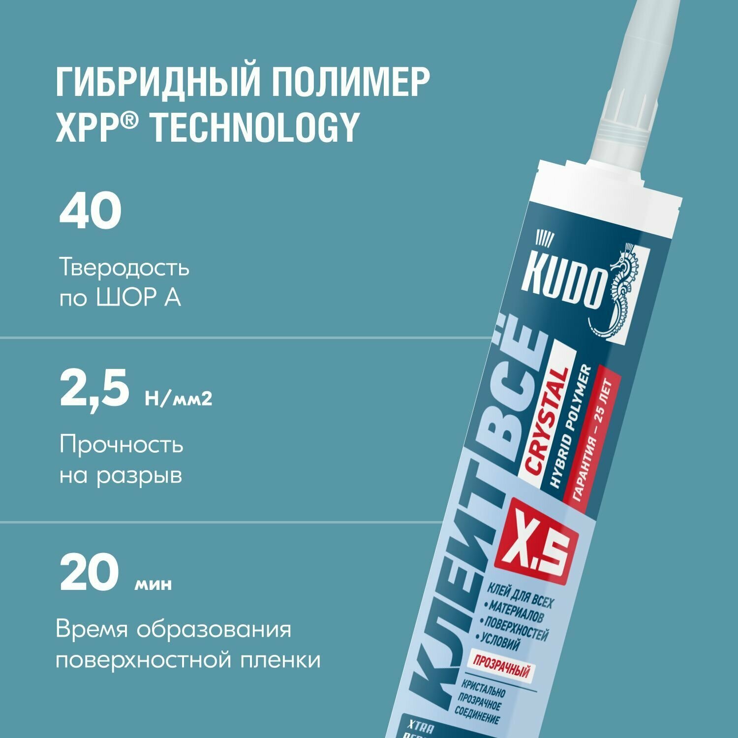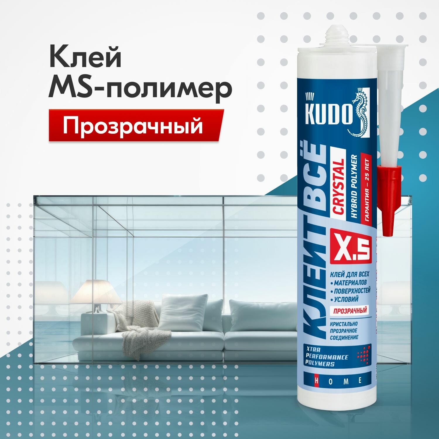 Клей-герметик KUDO, универсальный, 280 мл, KX-5T, Crystal Клеит все