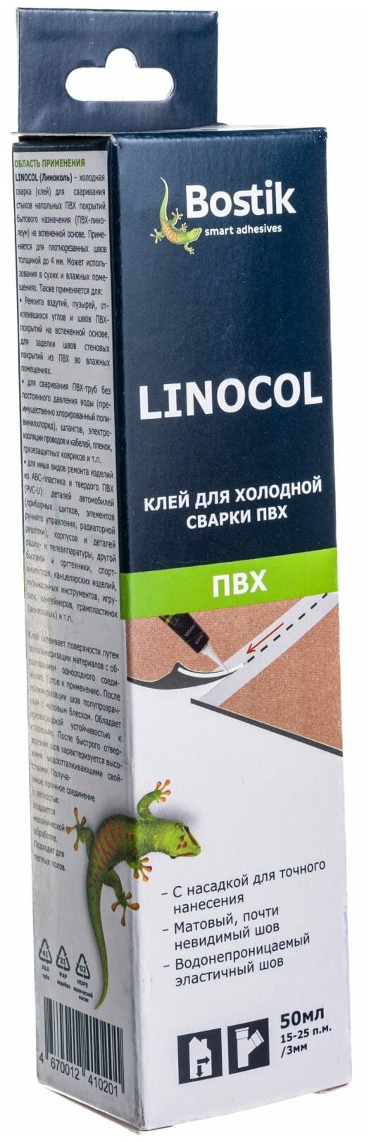Бостик Linocol клей для швов ПВХ (50мл) бесцветный / BOSTIK Linocol клей для холодной сварки швов ПВХ покрытий (50мл) бесцветный