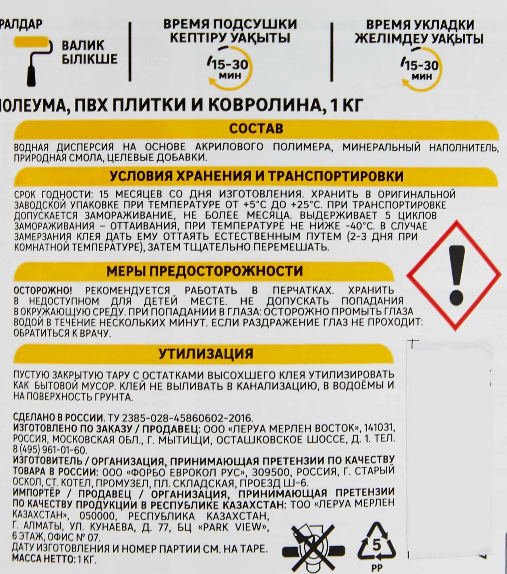 Клей-фиксатор для линолеума и ковролина, 1 кг интересное: