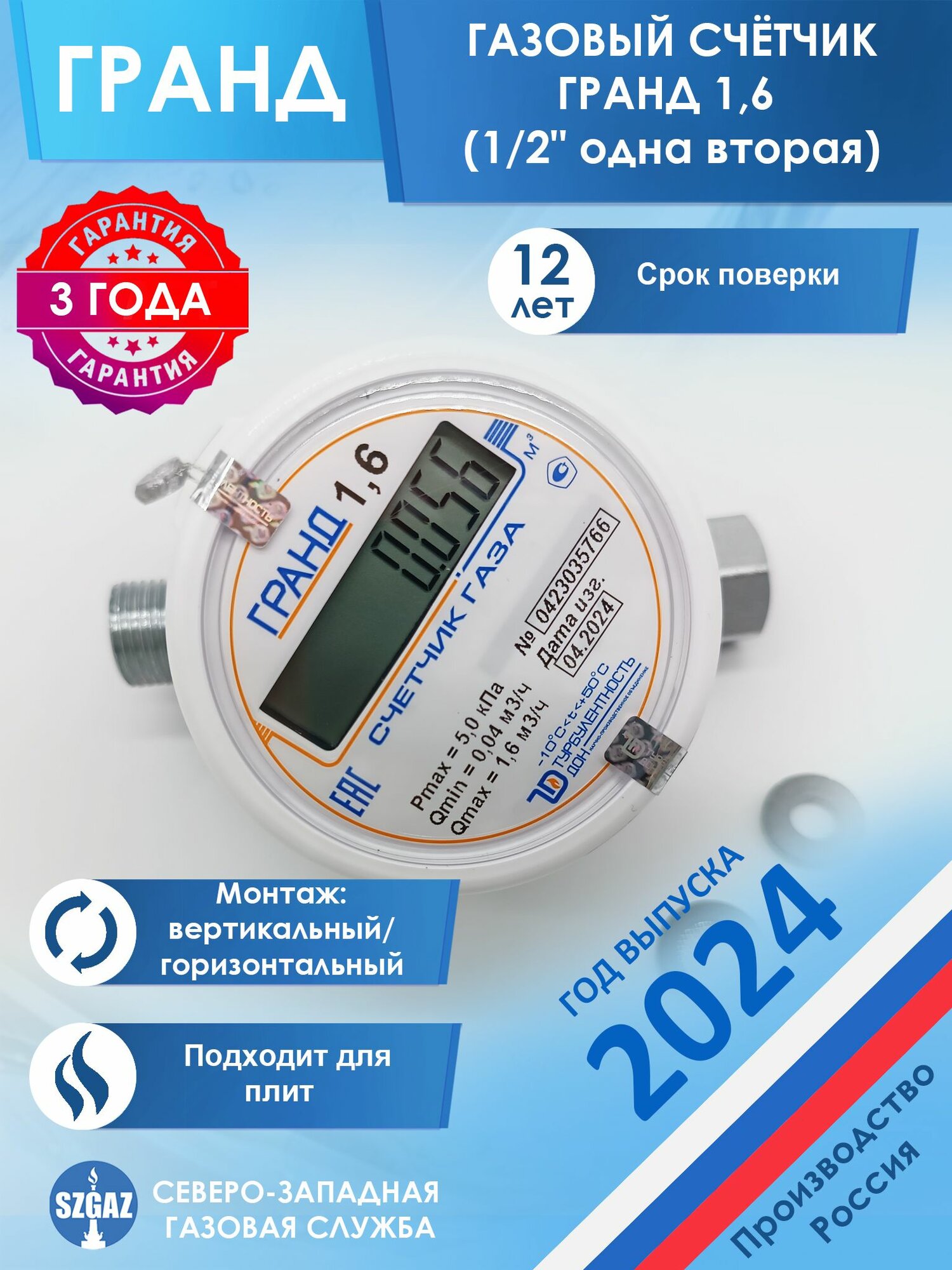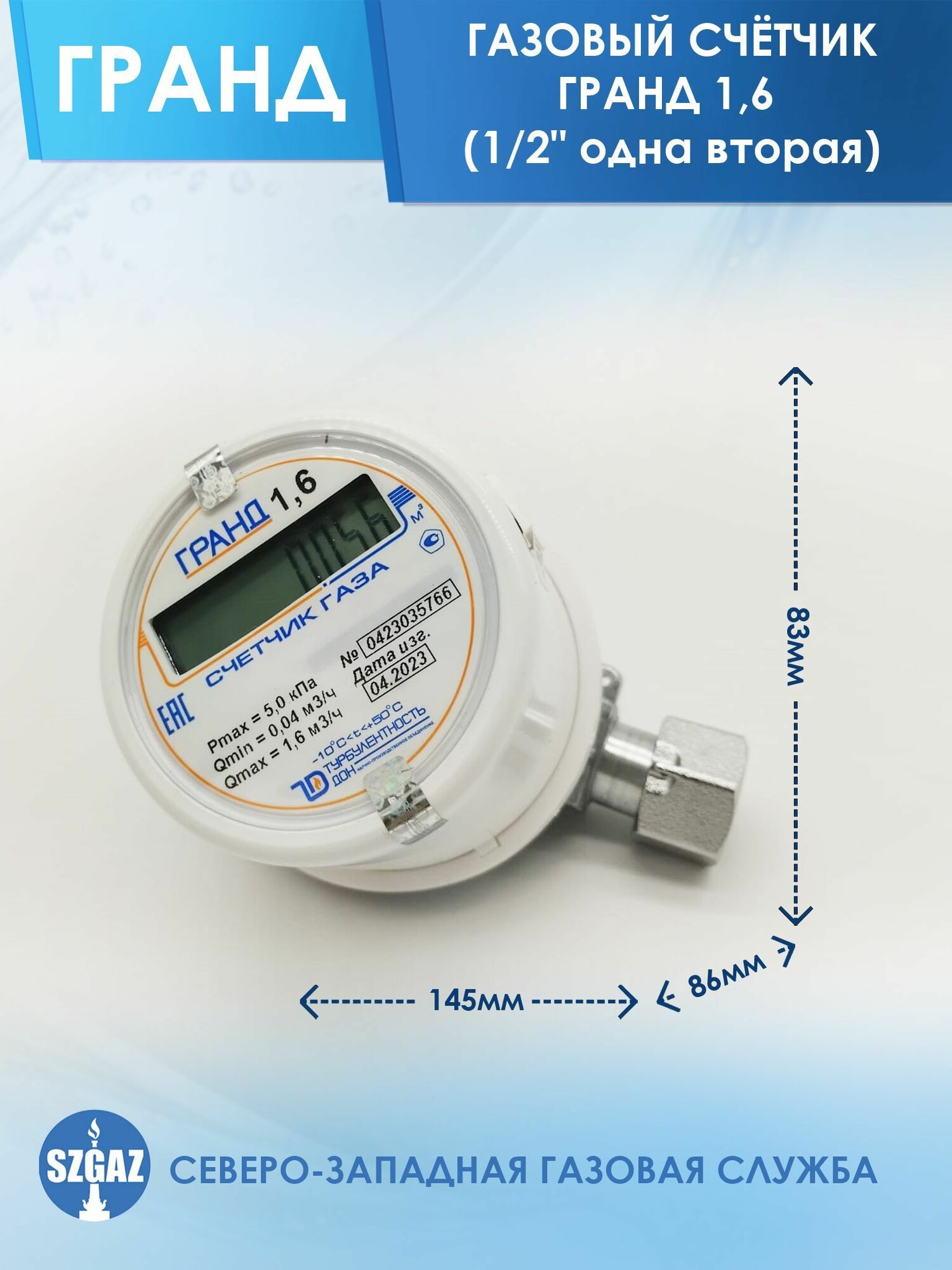 Счетчик газа Гранд 1,6, G 1/2", версия 1, Турбулентность-Дон 00000000049 интересное: