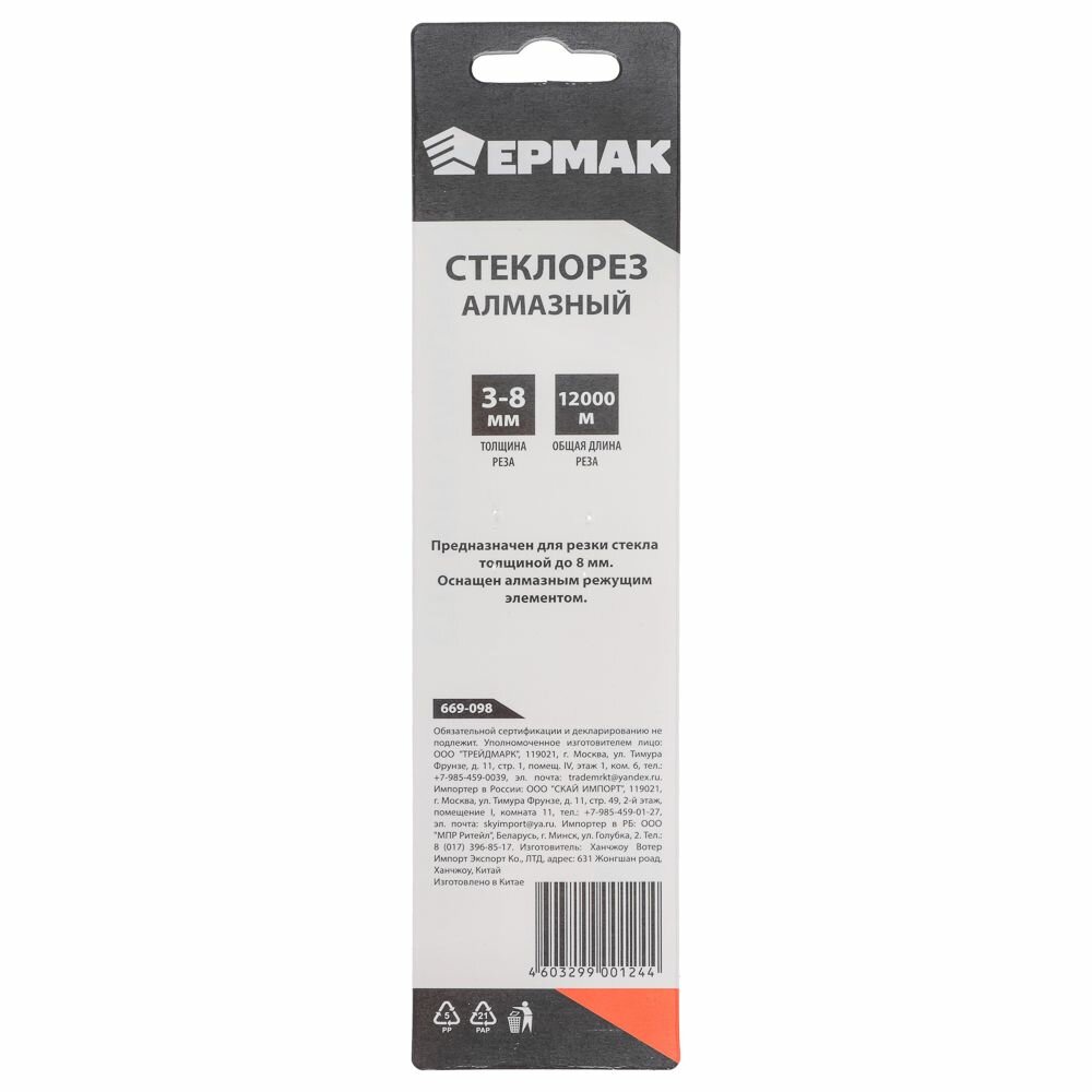 Стеклорез 6-ти роликовый ермак, толщина реза 3-8 мм интересное: