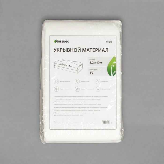 Купить Материал укрывной, 10 × 3,2 м, плотность 30 г/м², спанбонд с УФ-стабилизатором, белый, Greengo, Эконом 30%