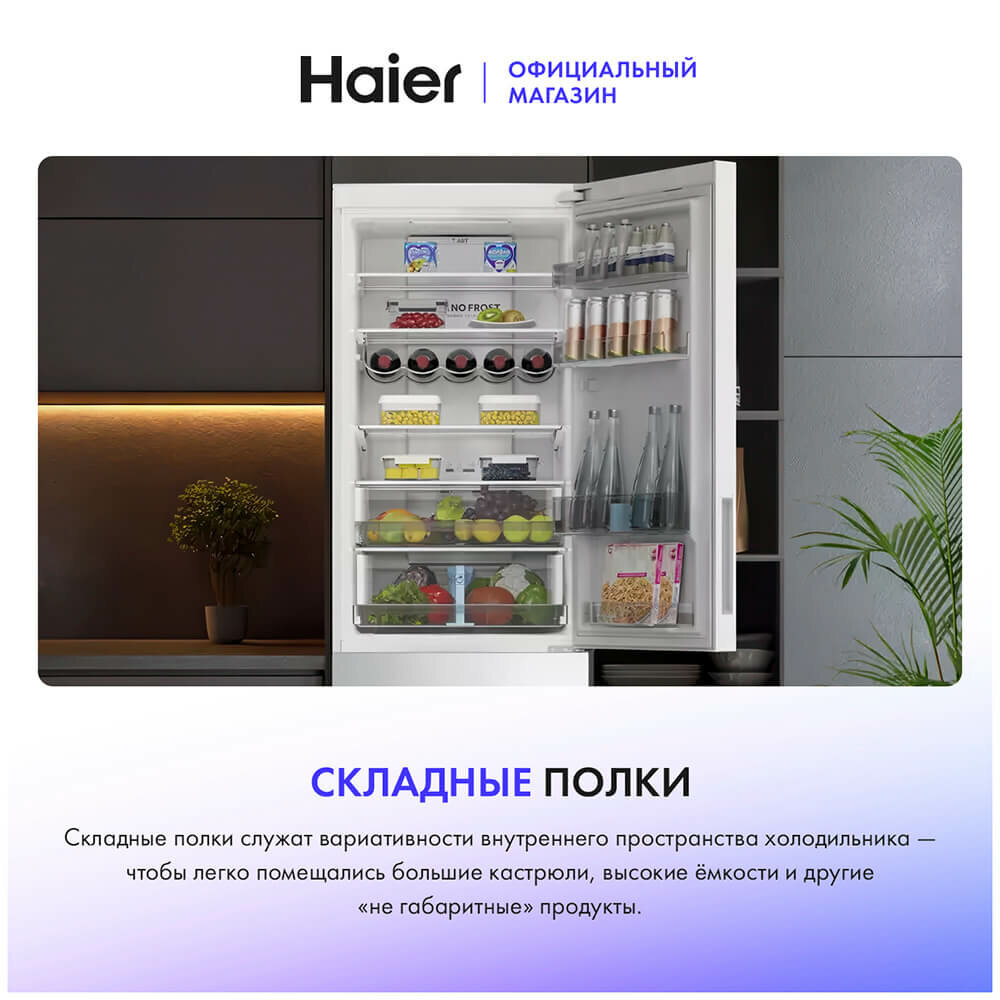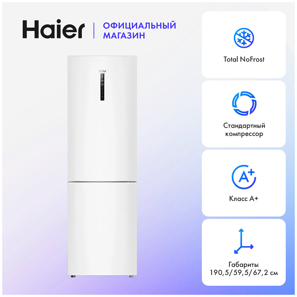 Двухкамерный холодильник Haier C2F636CWRGU1, Total NoFrost, Класс А+, LED освещение, белый