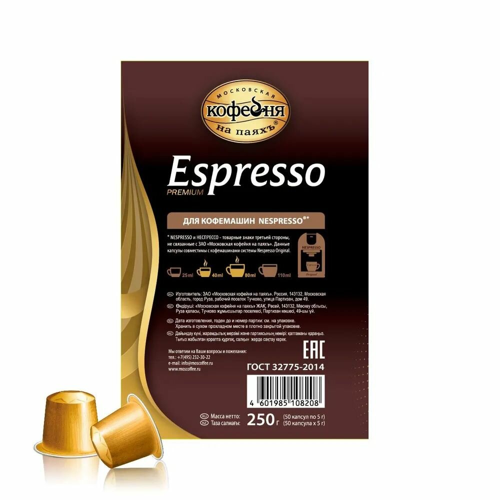 Кофе в капсулах, Московская Кофейня на паяхъ, Espresso Сrema , 50 шт по 5 гр.