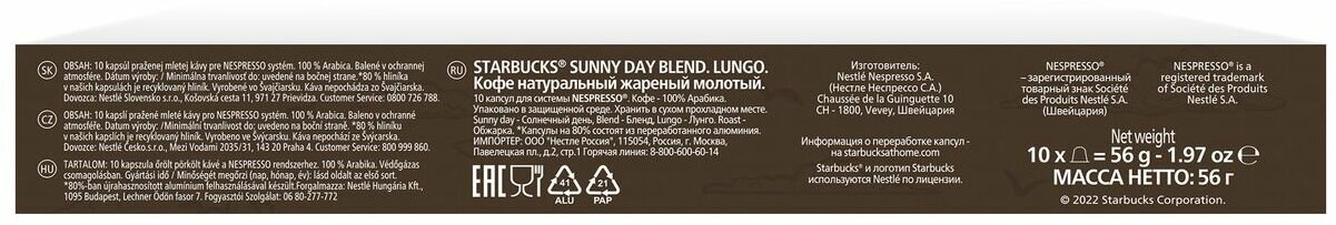Купить Кофе в капсулах Starbucks Nespresso Sunny Day Blend Lungo 10кап. /Starbucks Nespresso Sunny Day Blend Lungo 56g