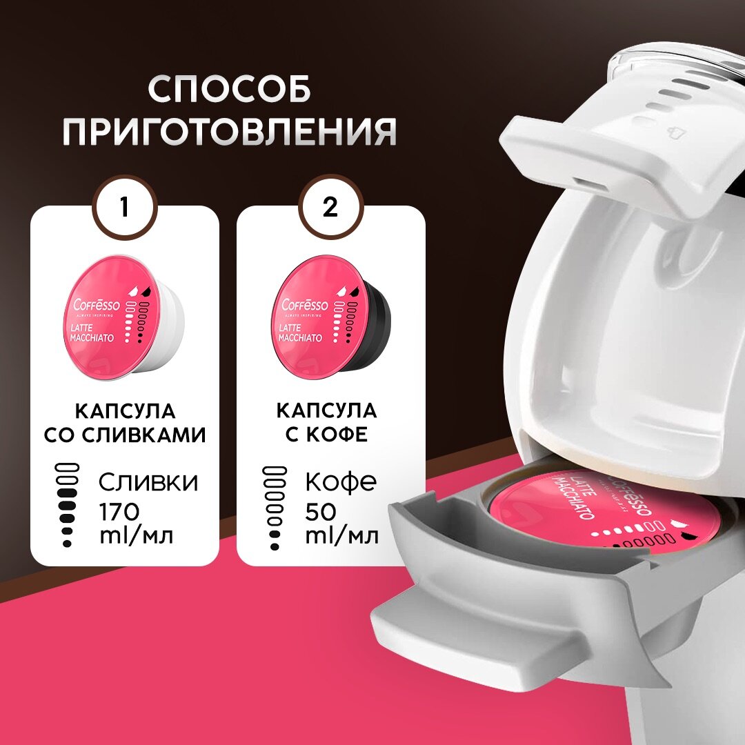 Кофе в капсулах COFFESSO "Latte Macchiat" для кофемашин Dolce Gusto, 8 порций, ш/к 08033 интересное: