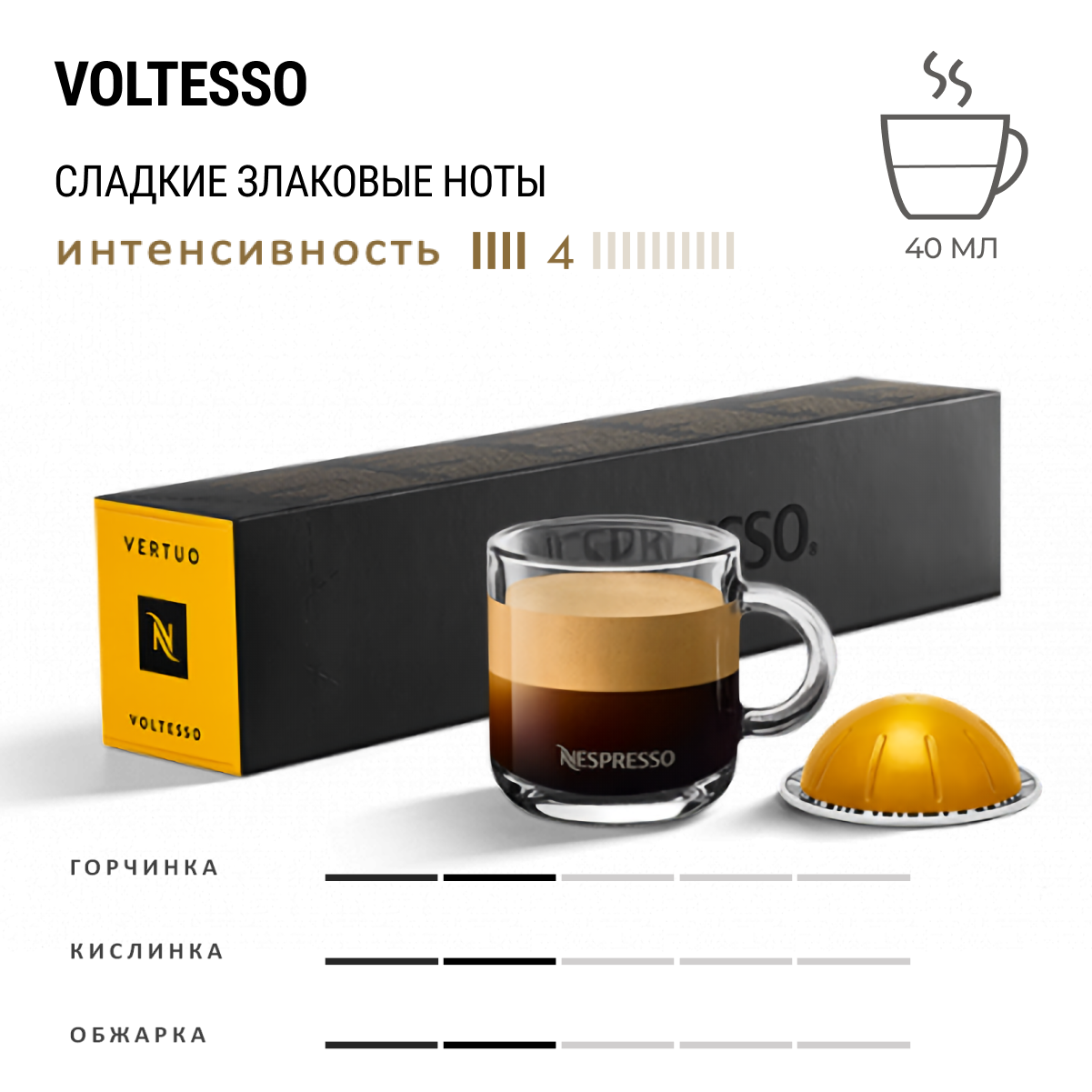 Кофе в капсулах Nespresso Vertuo Voltesso , объем 40-80 мл, крепость 4/13, 2 уп. 20 капсул для кофемашин