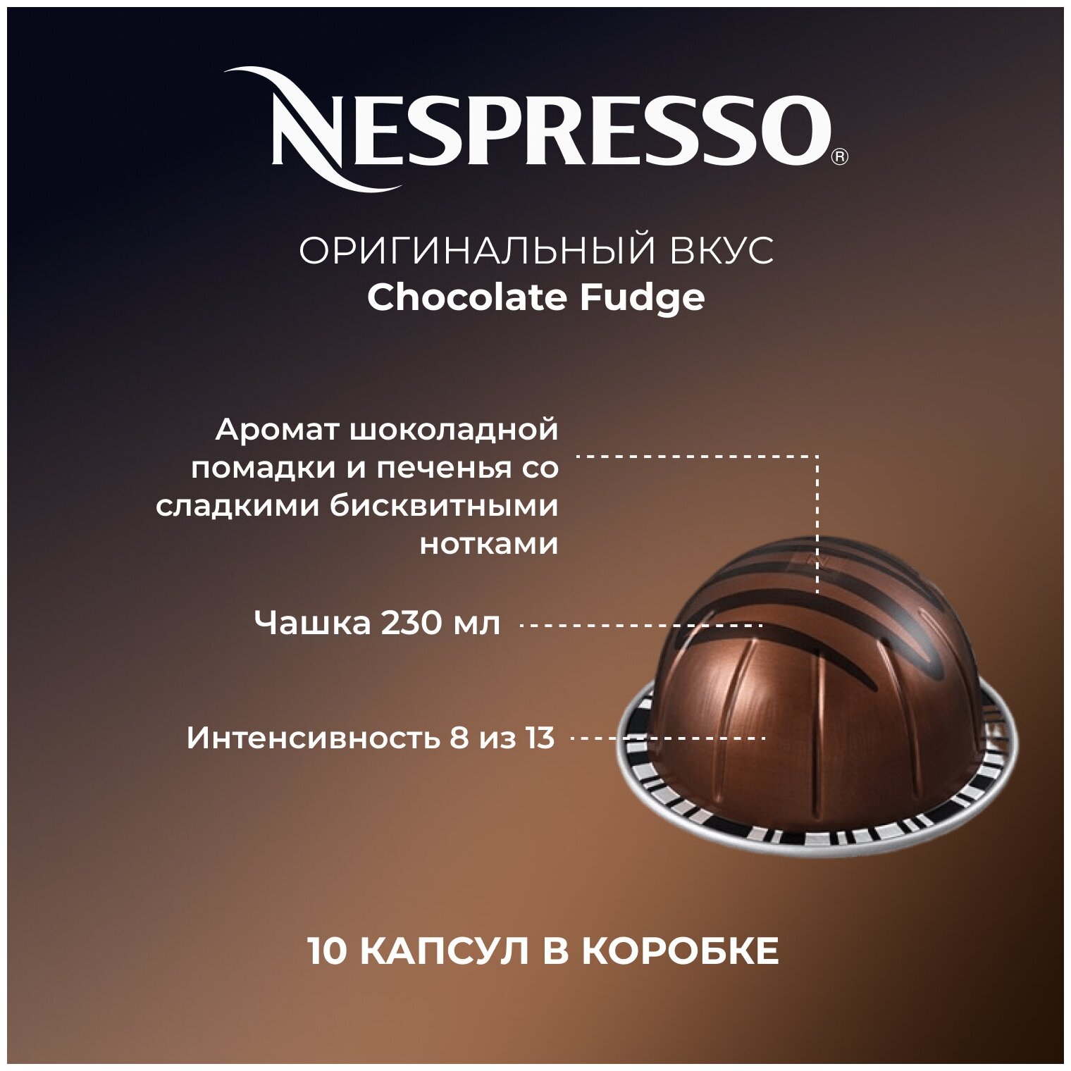 Кофе в капсулах Nespresso Vertuo, RICH CHOCOLATE, 230 ml, натуральный, молотый кофе в капсулах, для капсульных кофемашин, неспрессо , 10шт