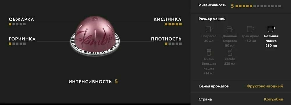 СохранитьКофе в капсулах Nespresso VERTUO Colombia, интенсивность 5, 10 кап., 230мл интересное: