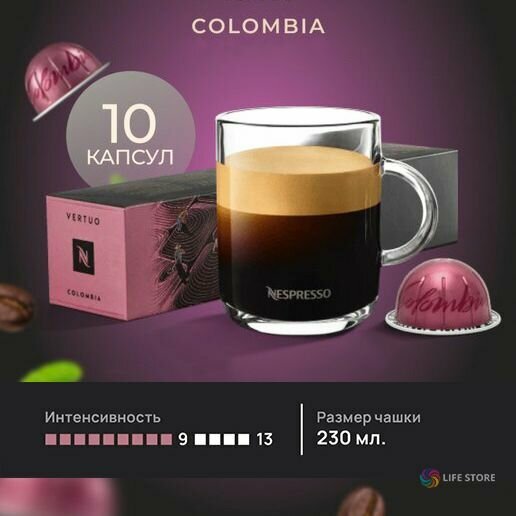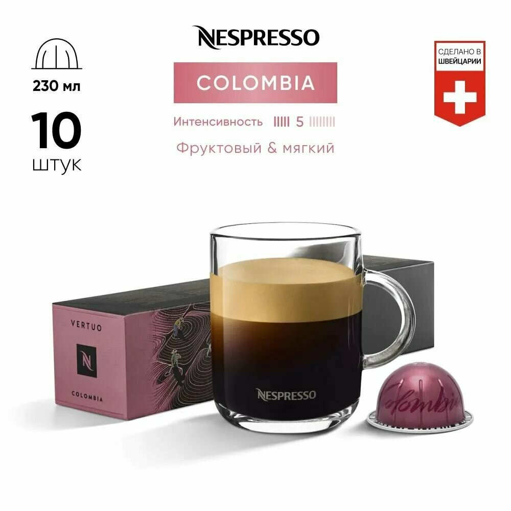 Купить Кофе в капсулах Nespresso VERTUO Colombia, интенсивность 5, 10 кап., 230мл