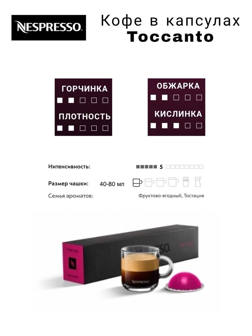 СохранитьКофе в капсулах, Nespresso Vertuo Toccanto , объем 40-80 мл, интенсивность 5/13, 10 уп. 100 кап. интересное: