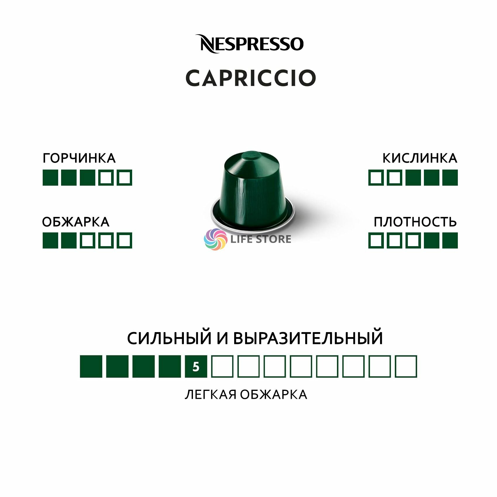 Оригинальные капсулы кофе Nespresso Capriccio эспрессо, интенсивность 5, 10 порций, 10 кап. в уп.