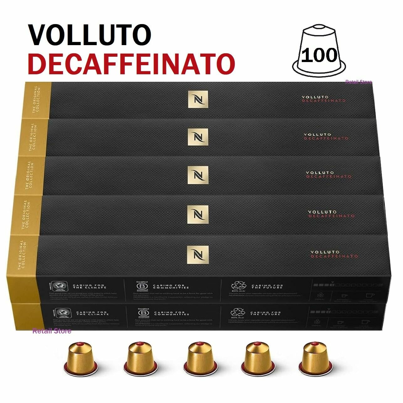Кофе Nespresso VOLLUTO DECAFFEINATO в капсулах, 50 капсул (5 упаковок)
