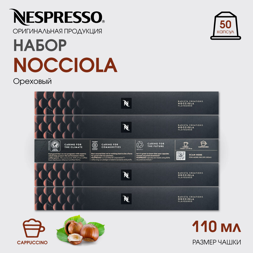 Купить Кофе в капсулах Nespresso Nocciola, 5 упаковок по 10 капсул, интенсивность 6, производство Швейцария
