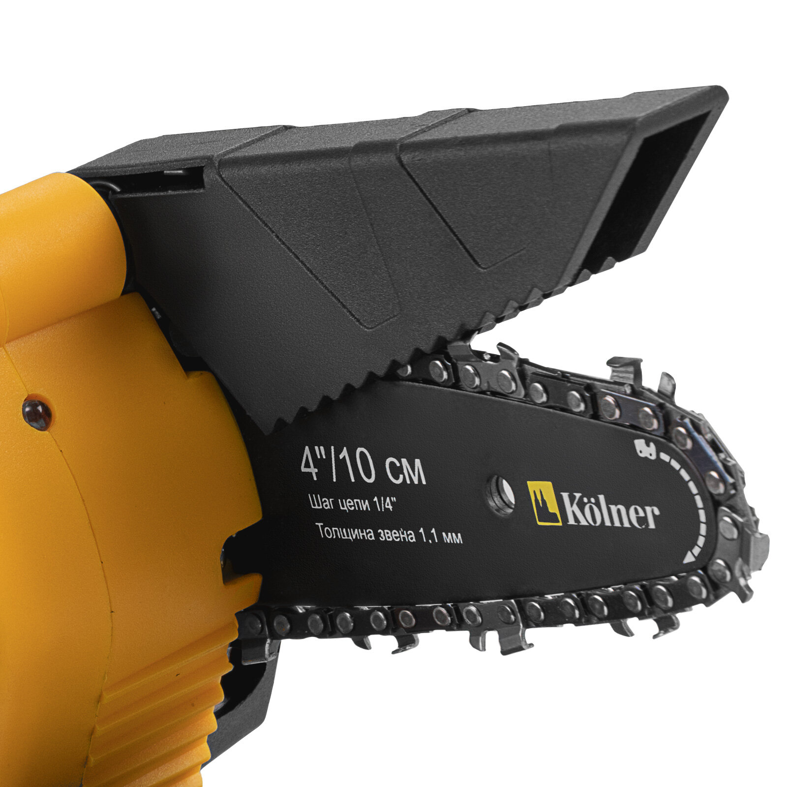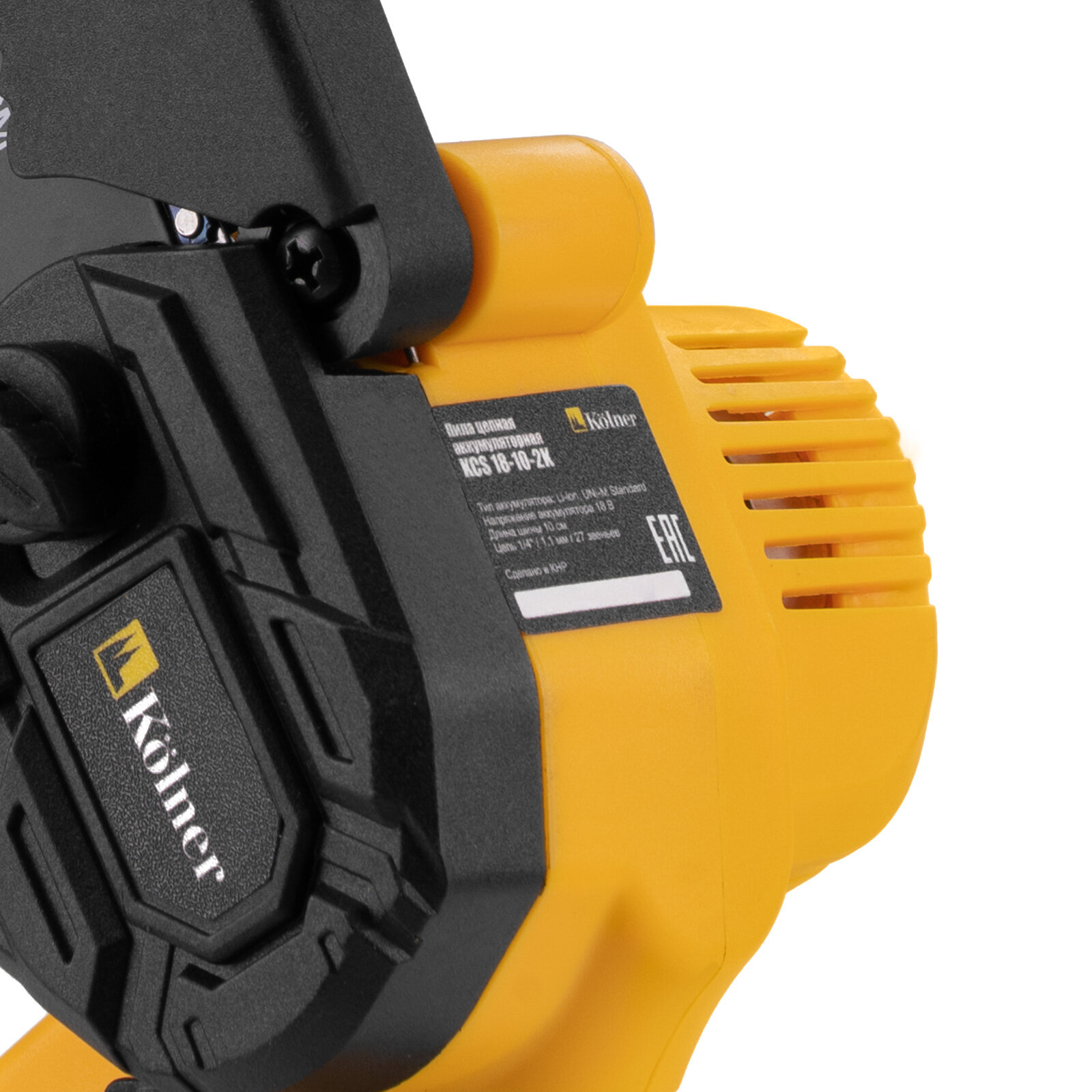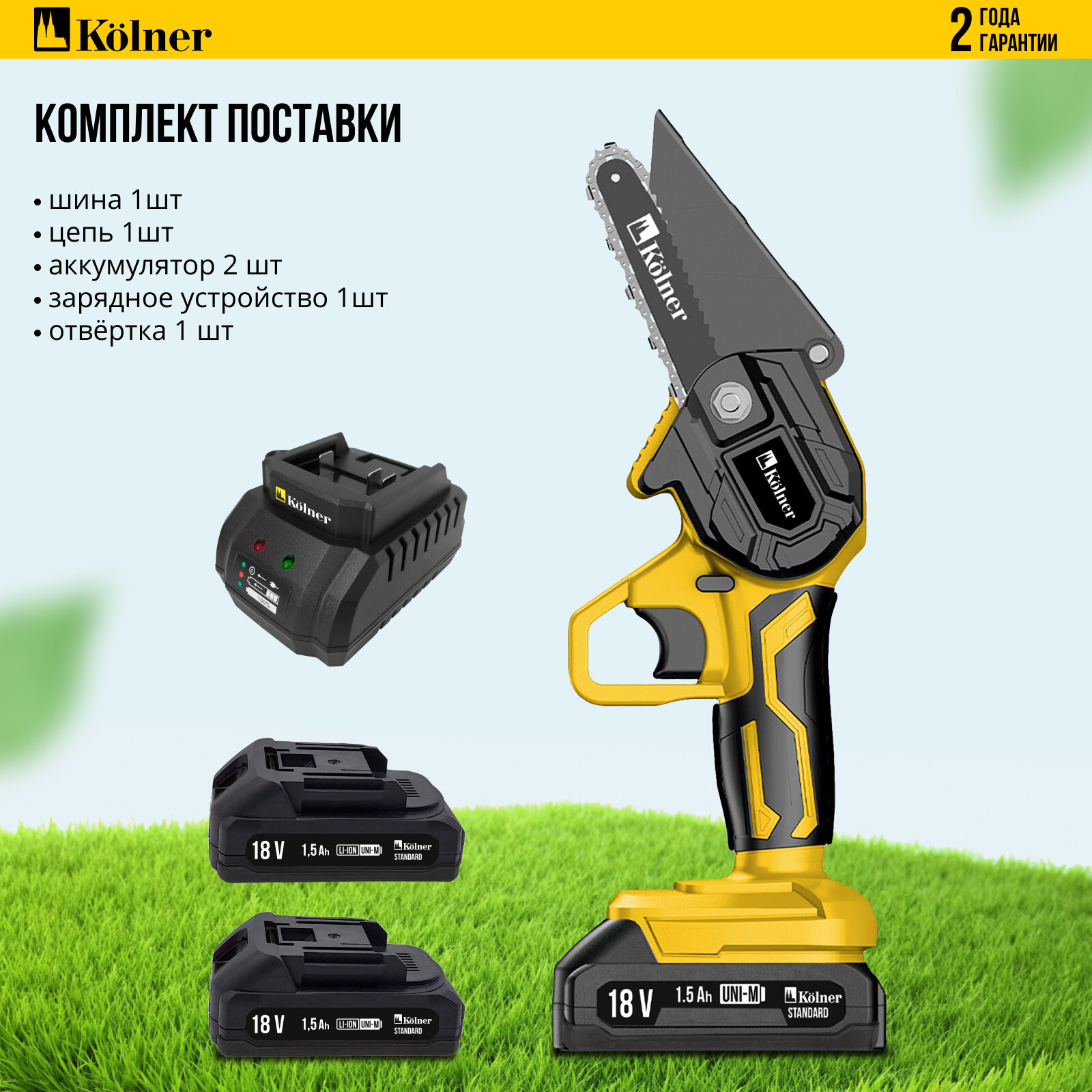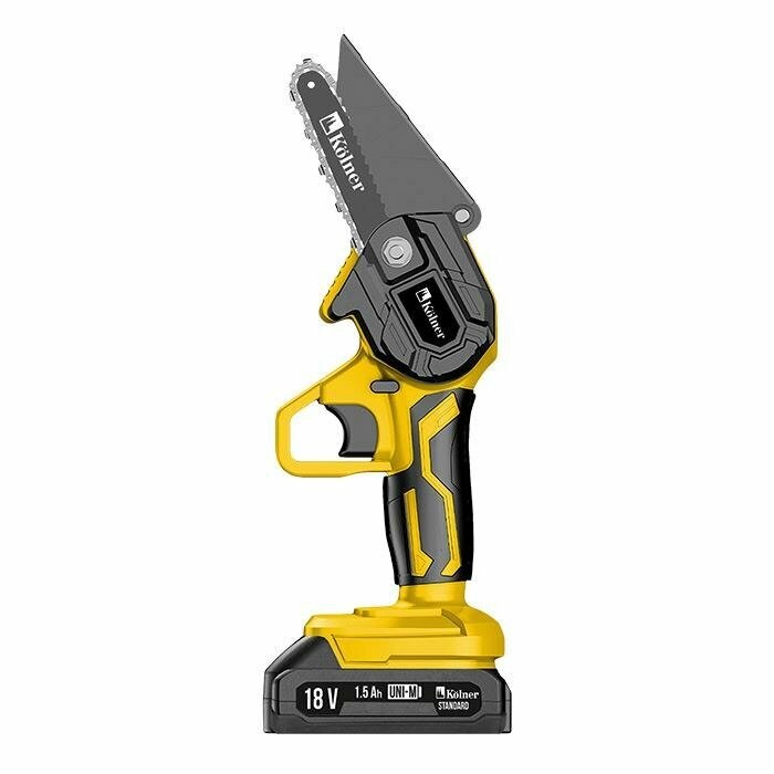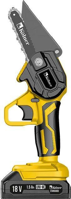 Цепная пила Kolner KCS 18-10-2K UNI Standard, Li-ion аккумулятор, длина шины 10 см, желтая