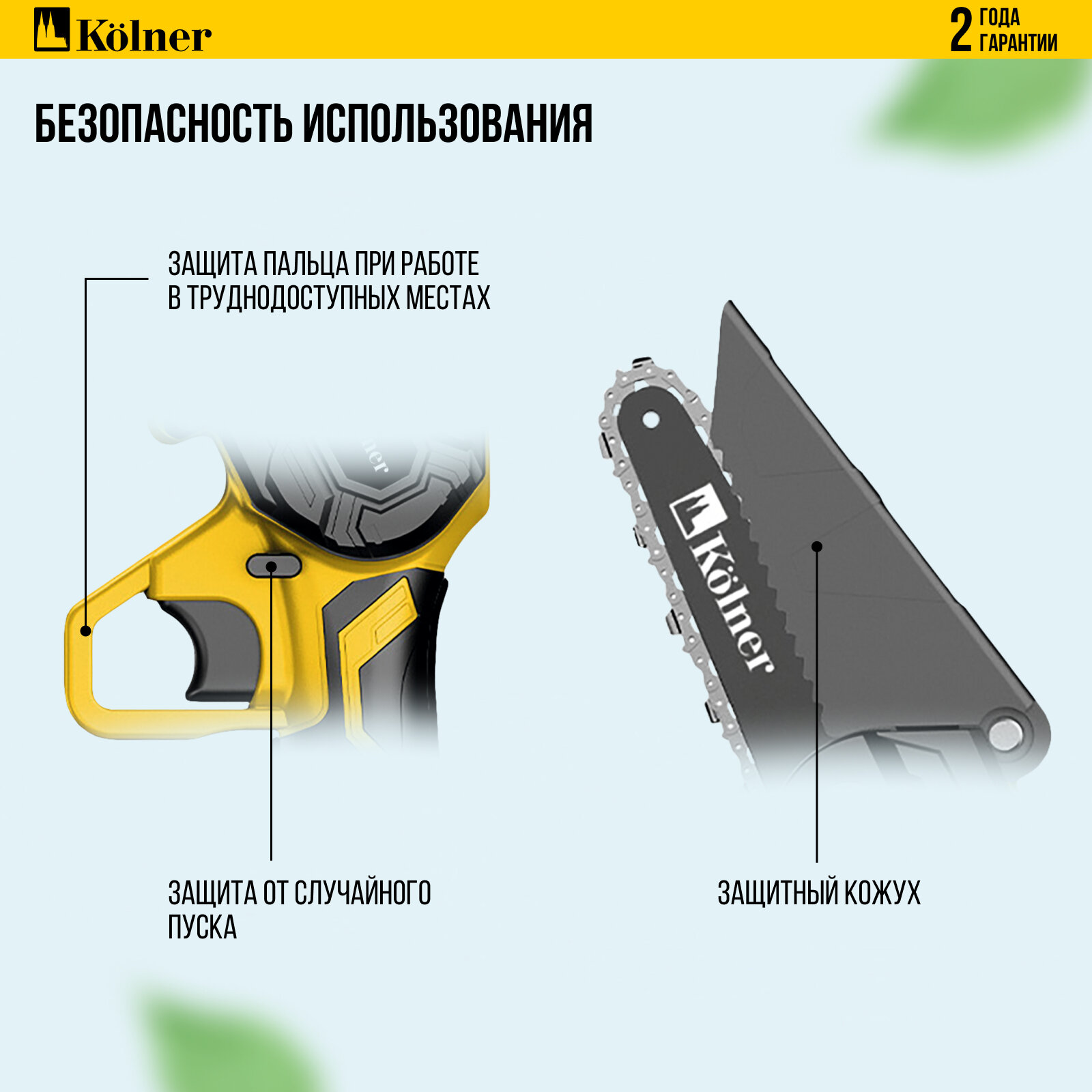 Пила цепная аккумуляторная Kolner KCS 18-10-2K шина 10см интересное: