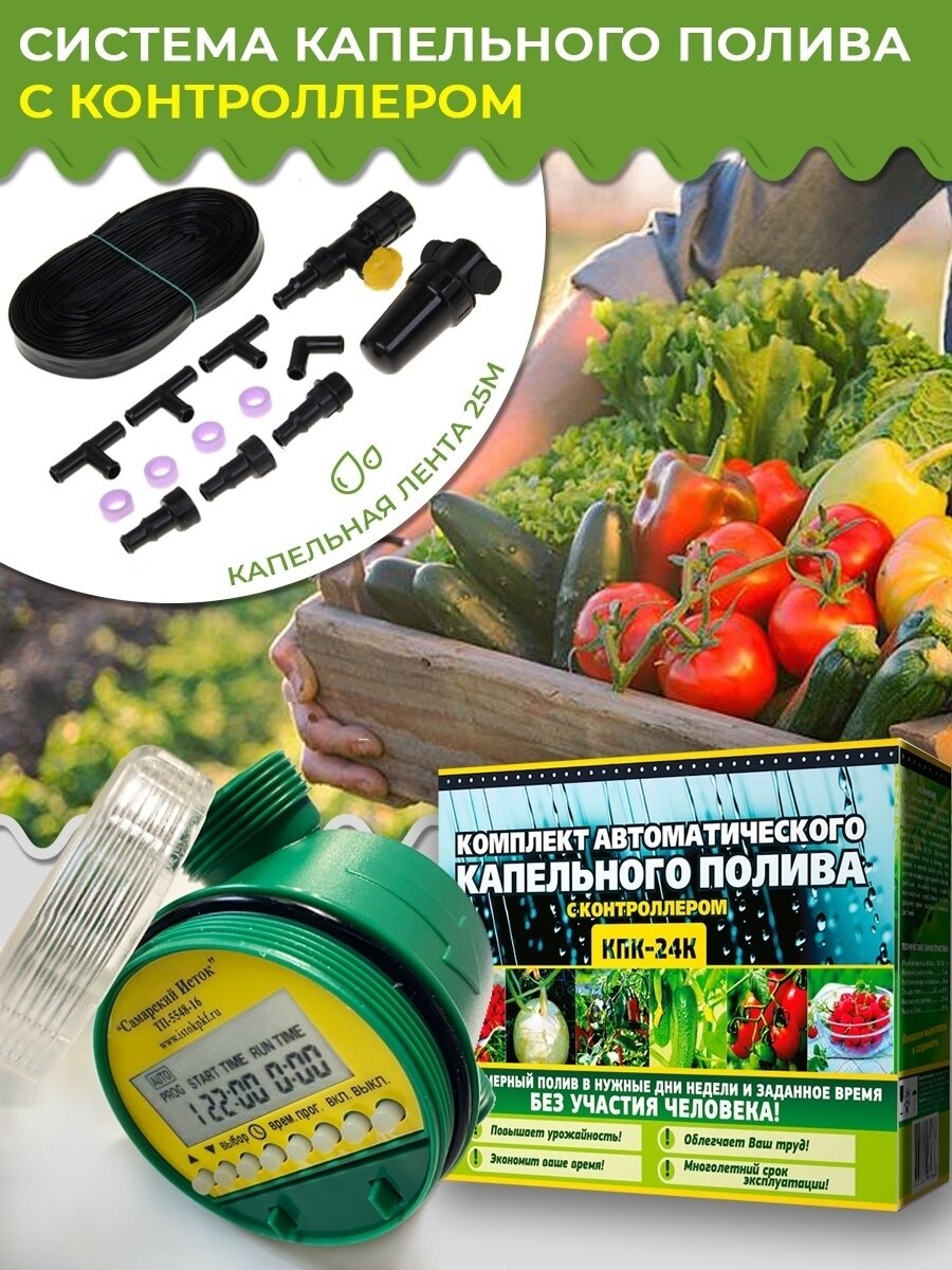 Система капельный автоматический полив 80 растений самотёк с контроллером для дачи KПK24K/TM интересное: