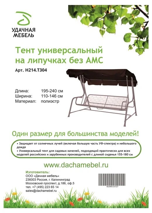 Тент Удачная мебель "Шоколад", для качелей, на липучках, 100% полиэстер, коричневый интересное: