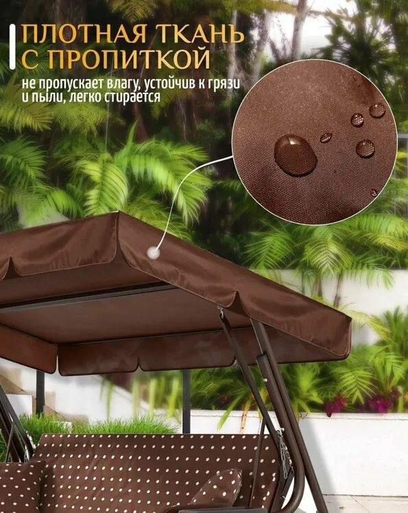 | Дополнительная информация | Тент - крыша для садовых качелей из уплотненной ткани Оксфорд 240D |