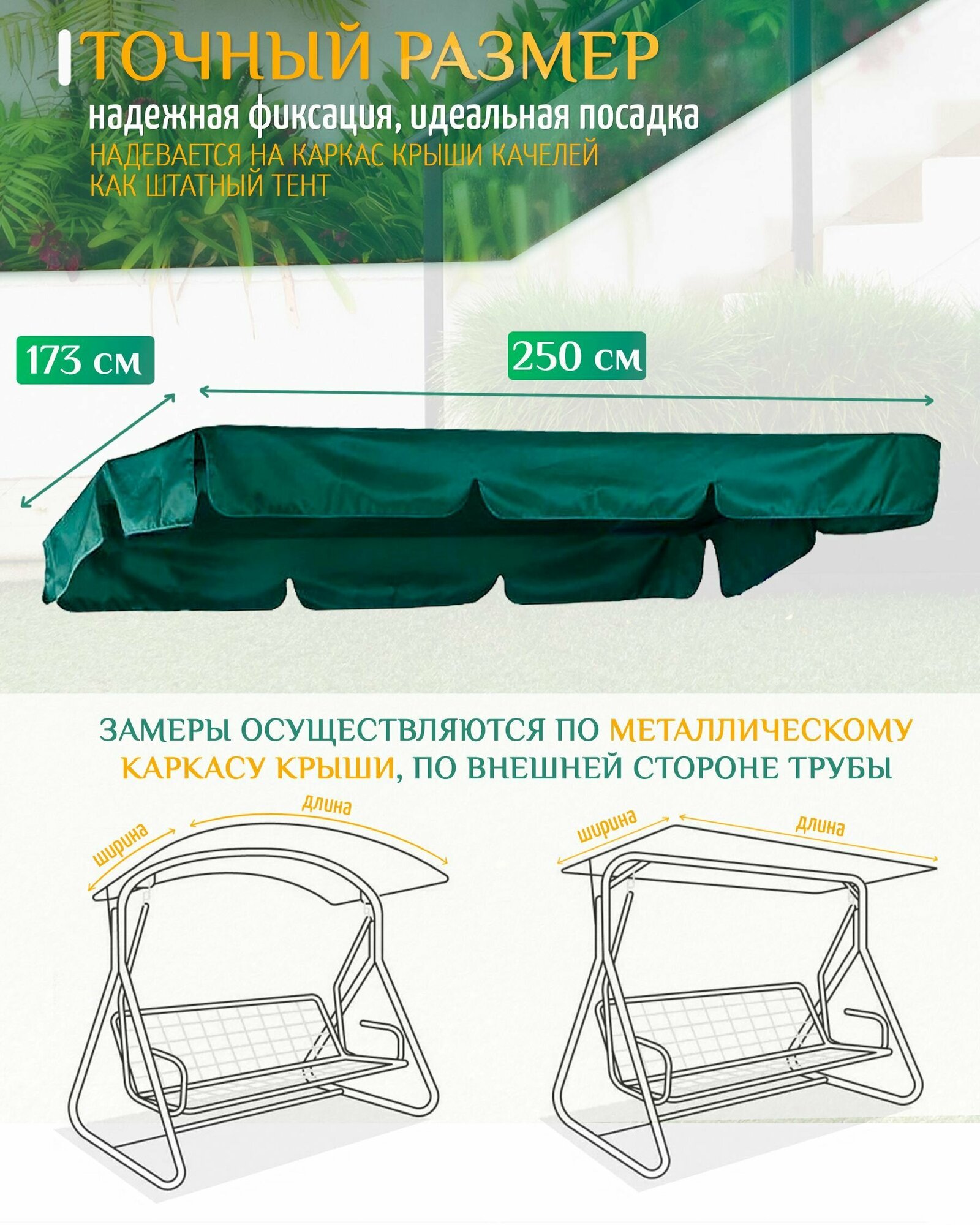 Тент для садовых качелей Нирвана (263х174 см) зеленый, навес садовый, укрытие для качелей, тент крыша