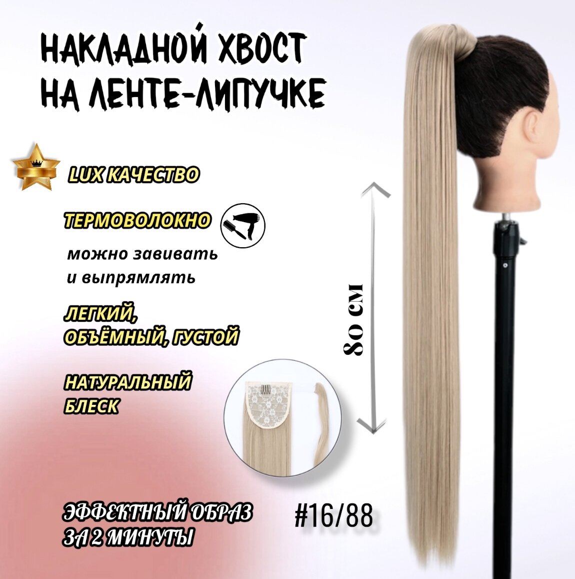 Купить Хвост накладной для волос. 80см. Холодный блондин