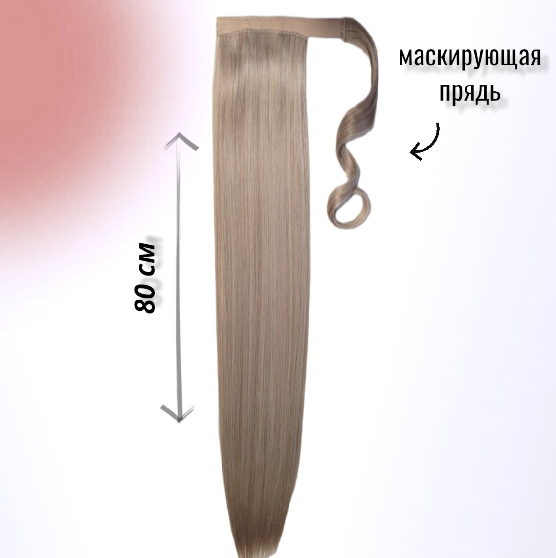 Хвост накладной для волос. 80см. Холодный светло-бежевый