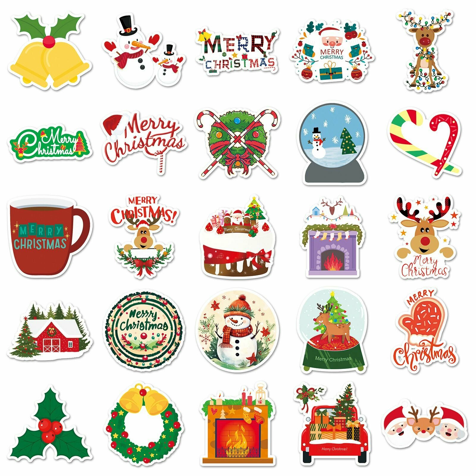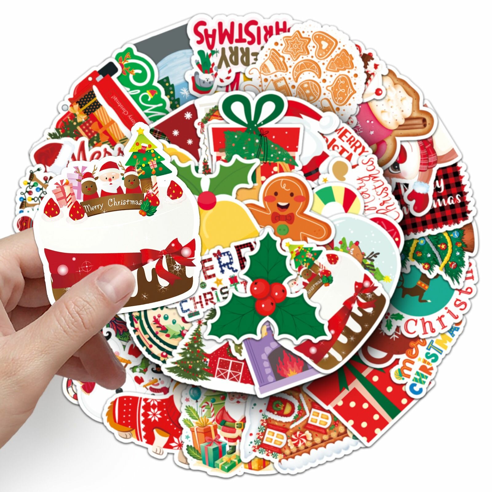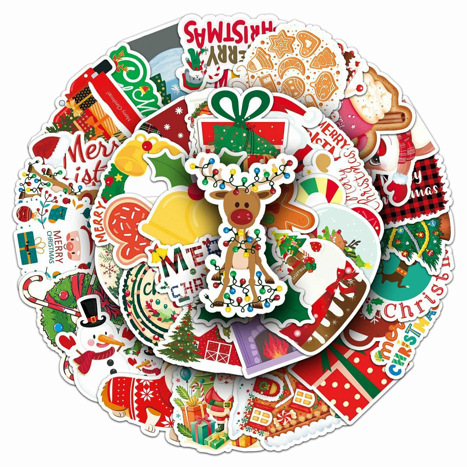 Купить Набор наклеек Новый Год Рождество 50 шт, стикеры самоклеящиеся новогодние