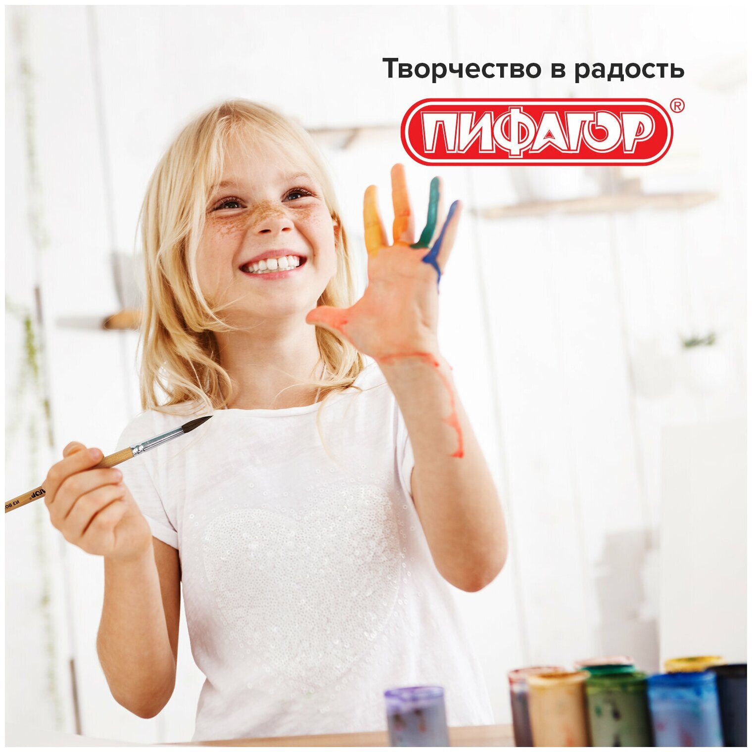 Кисти / кисточки для акварели, гуаши для рисования Пифагор, набор 6 шт. (белка круглые № 1, 3, 5, 7, 9, 11), блистер, 200891 интересное: