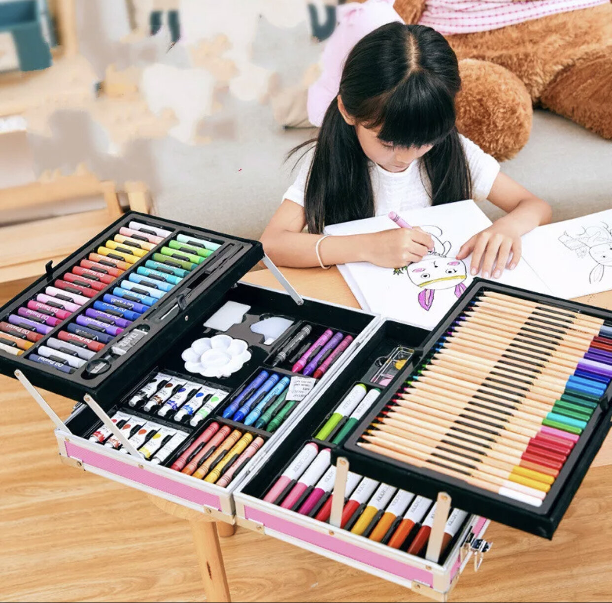 | Комплектация | Масляные краски 24 шт, Пастель 24 шт, Фломастеры 33 шт, Цветные карандаши 28 шт, Акварельные краски 24 шт, Кисти 4 шт, Контейнеры для красок 2 шт, Простые карандаши 2 шт, Замешанный ластик, Ластик, Точилка, Стильный чемодан |