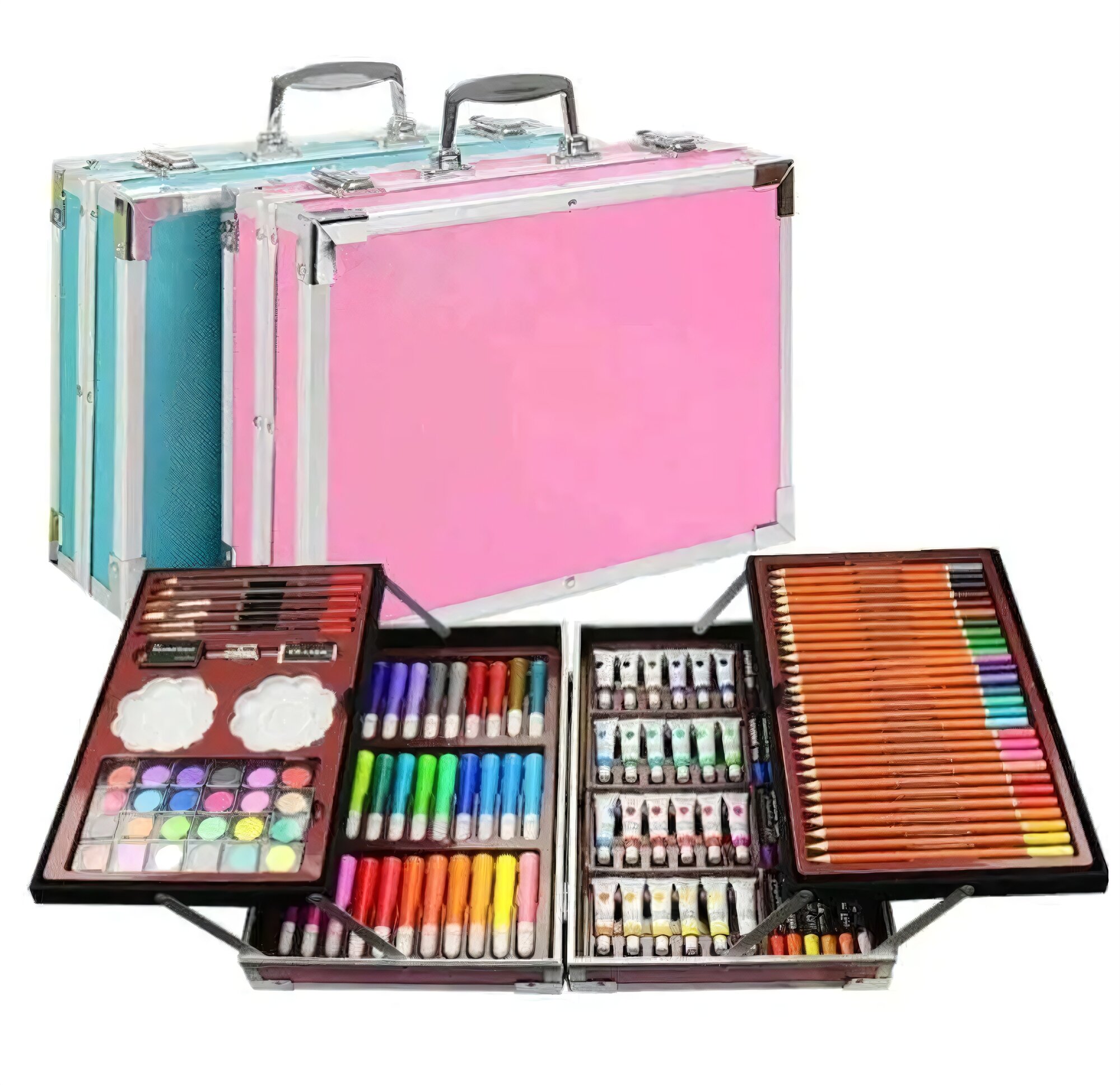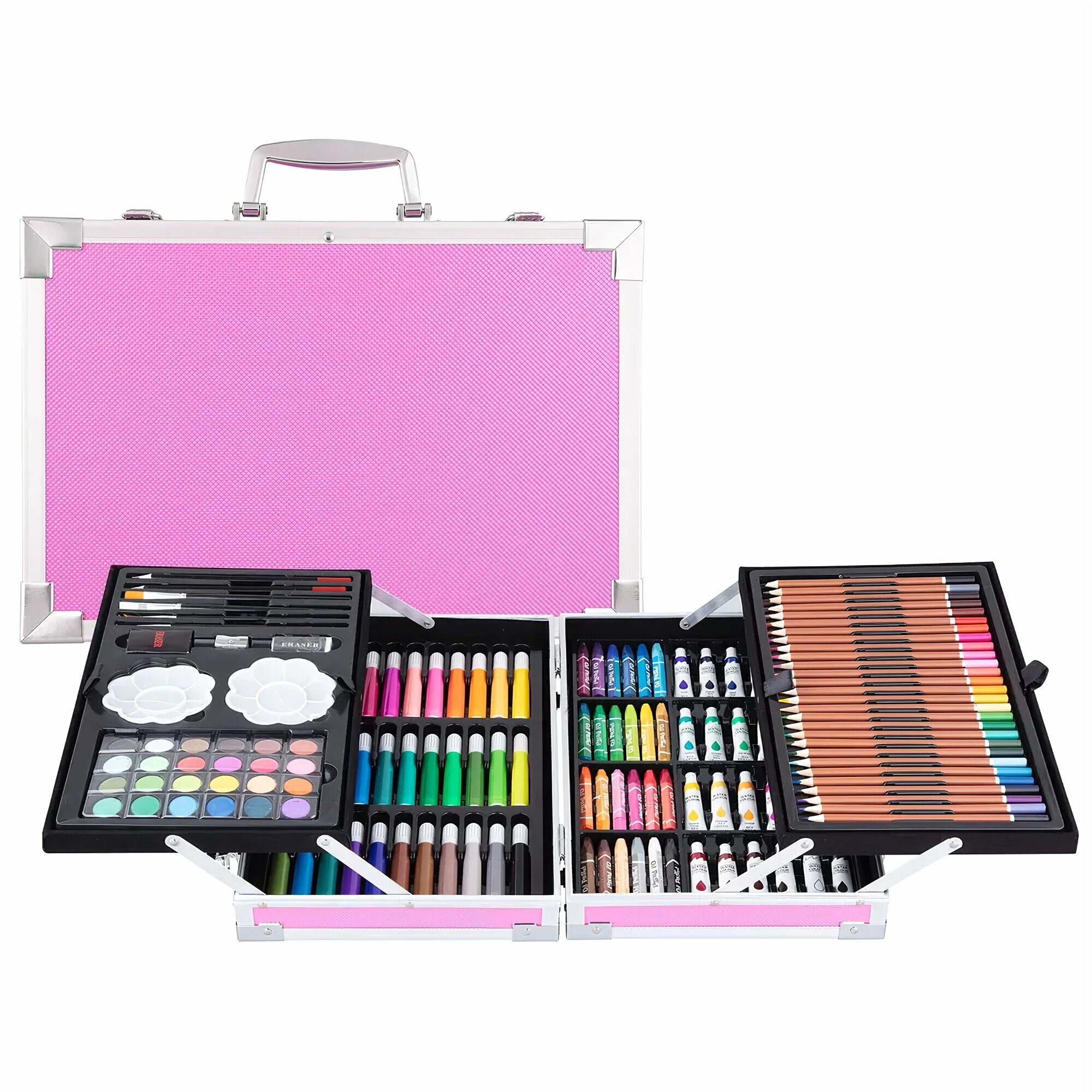 Купить Набор для рисования "Чемодан творчества" с красками, в алюминиевом кейсе, 145 предметов, розовый