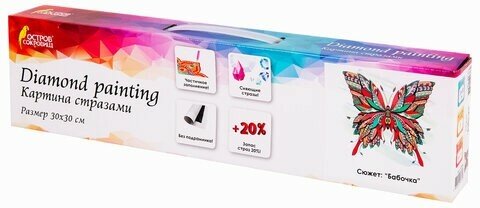 СохранитьКартина стразами (алмазная мозаика) сияющая 30х30 см, остров сокровищ Бабочка, без подрамника, 662446 интересное: