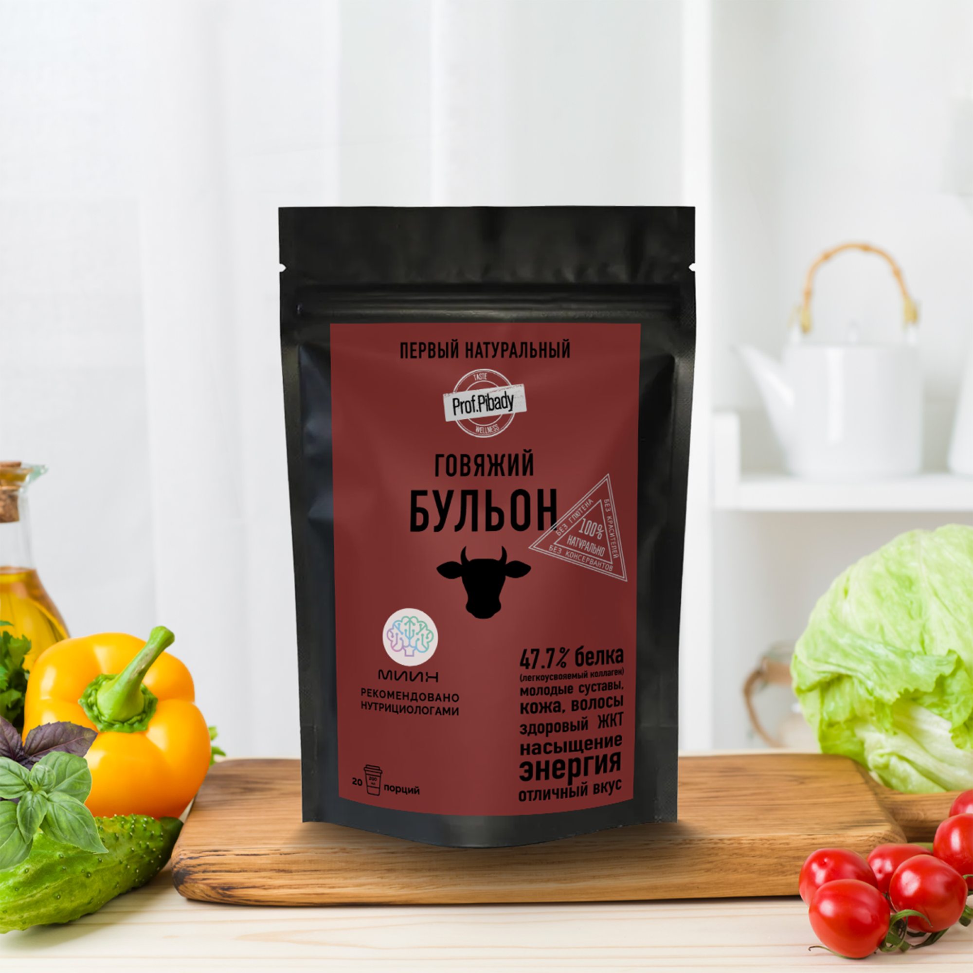 Натуральный сухой говяжий бульон, 20 порций.