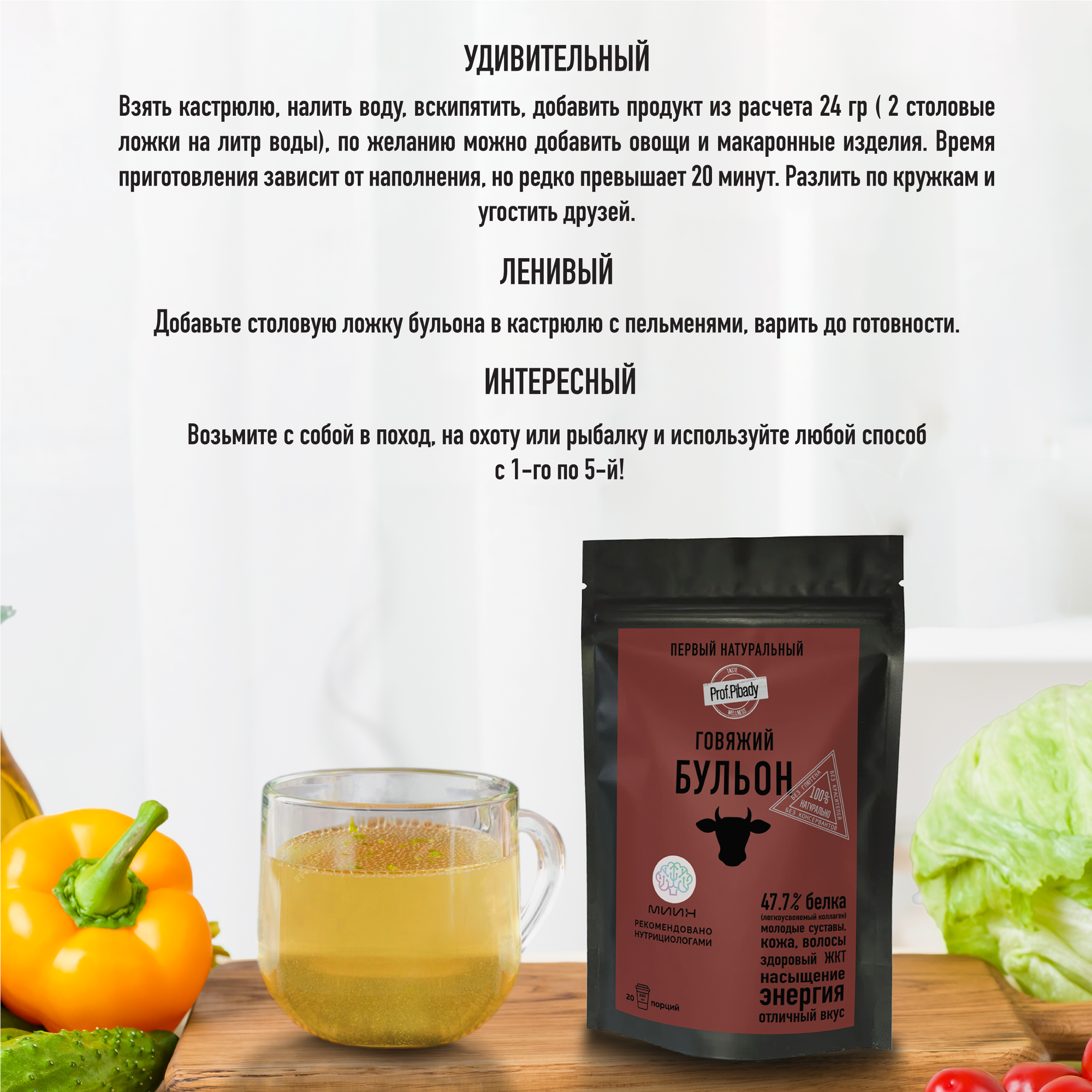 Натуральный сухой говяжий бульон с коллагеном 100 грамм, 20 порций. интересное: