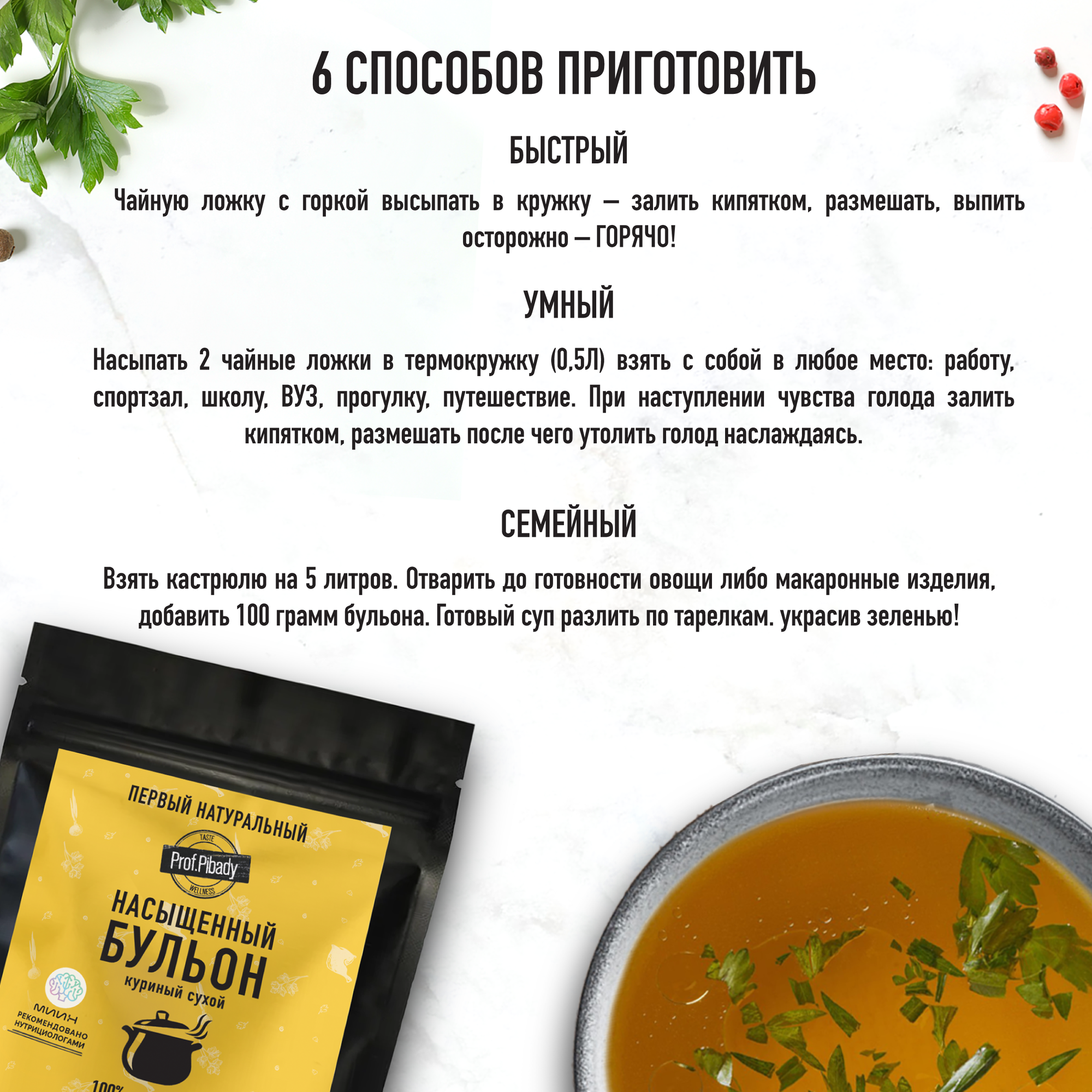 Насыщенный бульон куриный сухой, 20 порций. интересное: