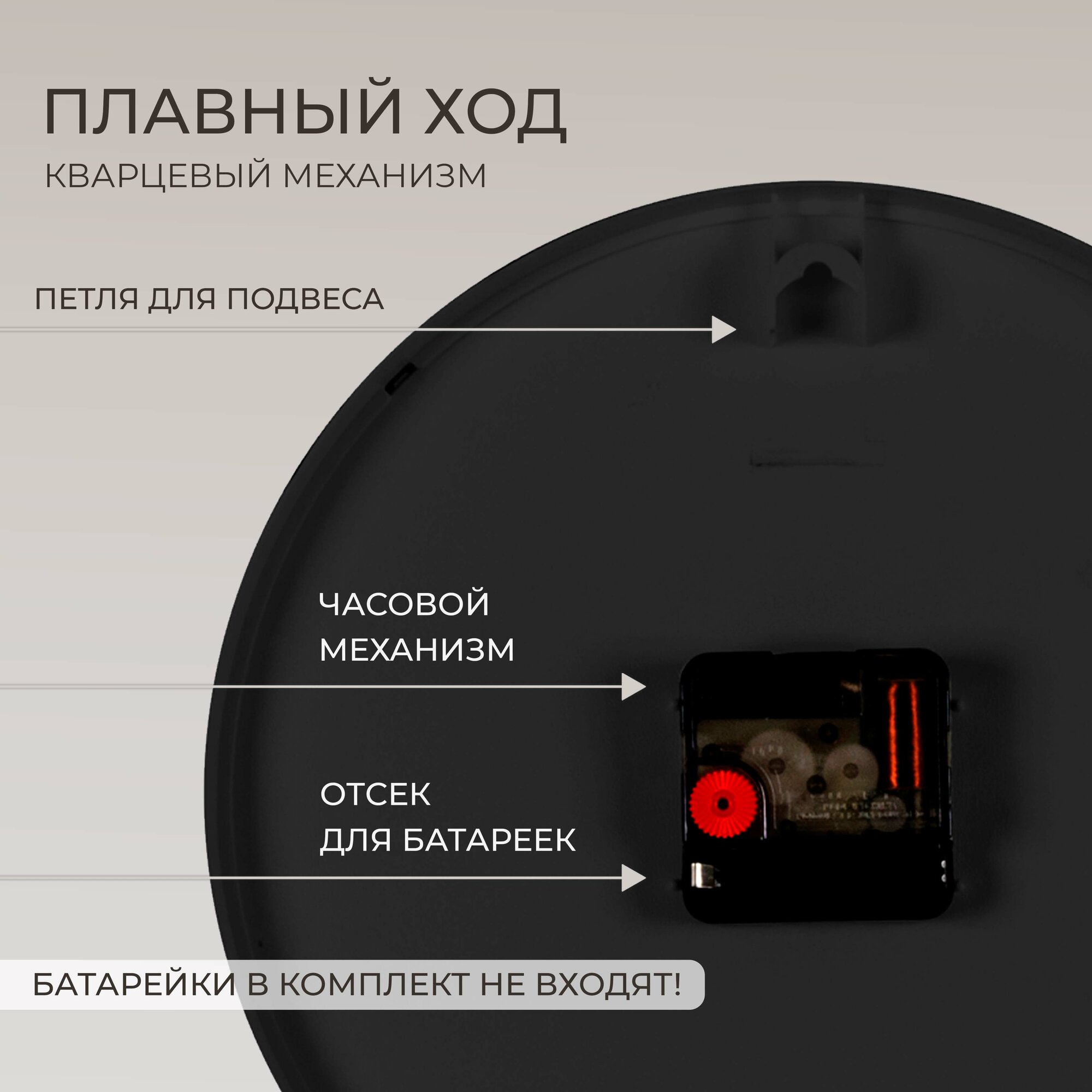 Часы настенные, интерьерные, бесшумные, d-19.5 см, черные