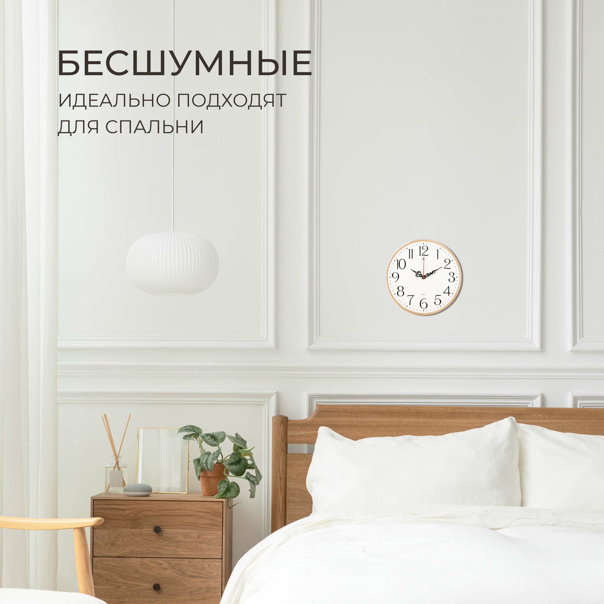 Часы настенные классические Рубин 19,5 см бесшумные с плавным ходом в комнату круглые