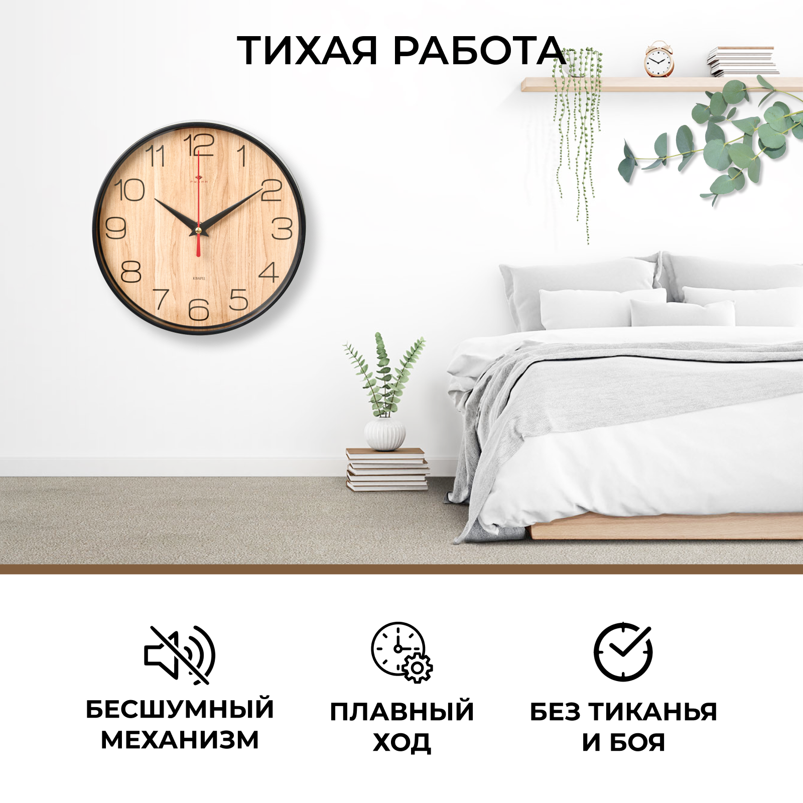 Бесшумные настенные часы круглой формы, диаметр 30 см, черный корпус