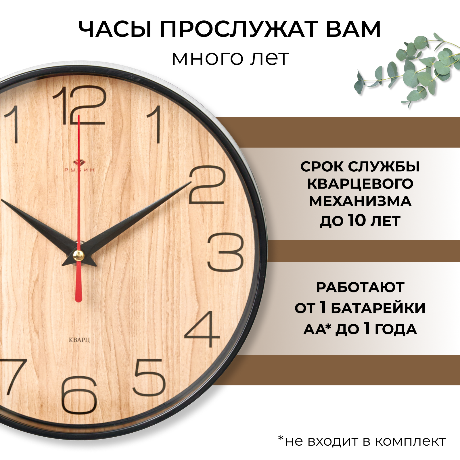 Современные круглые настенные кварцевые часы на батарейке АА Рубин Классика 2019-111В с арабскими цифрами d-19,5 см