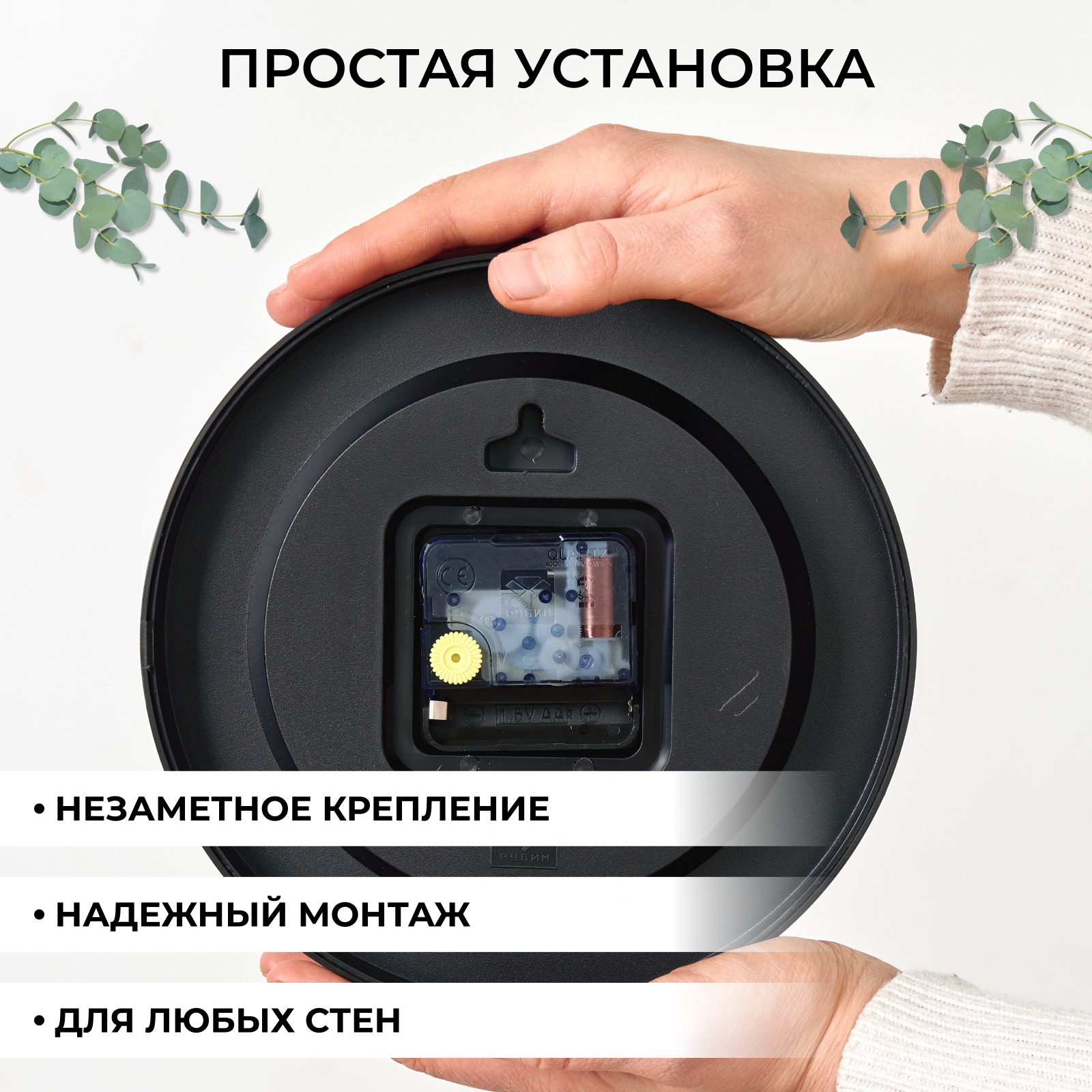 Часы настенные, интерьерные, бесшумные, d-19.5 см, черные