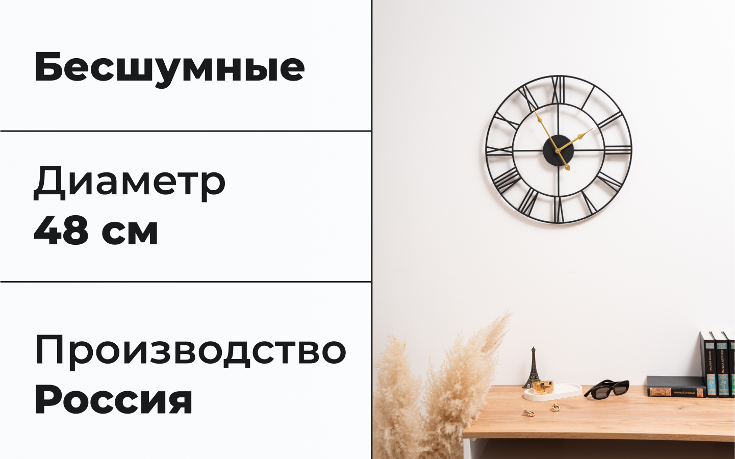 Часы настенные круг диаметр 46 см , открытая стрелка, корпус черный лофт