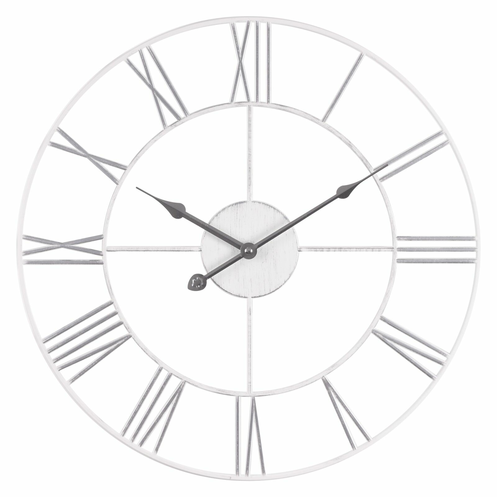 Большие настенные часы Лофт, бесшумные часы d=48 см, часы с римскими цифрами, открытая стрелка, Белый Золото/ Белые большие часы металл