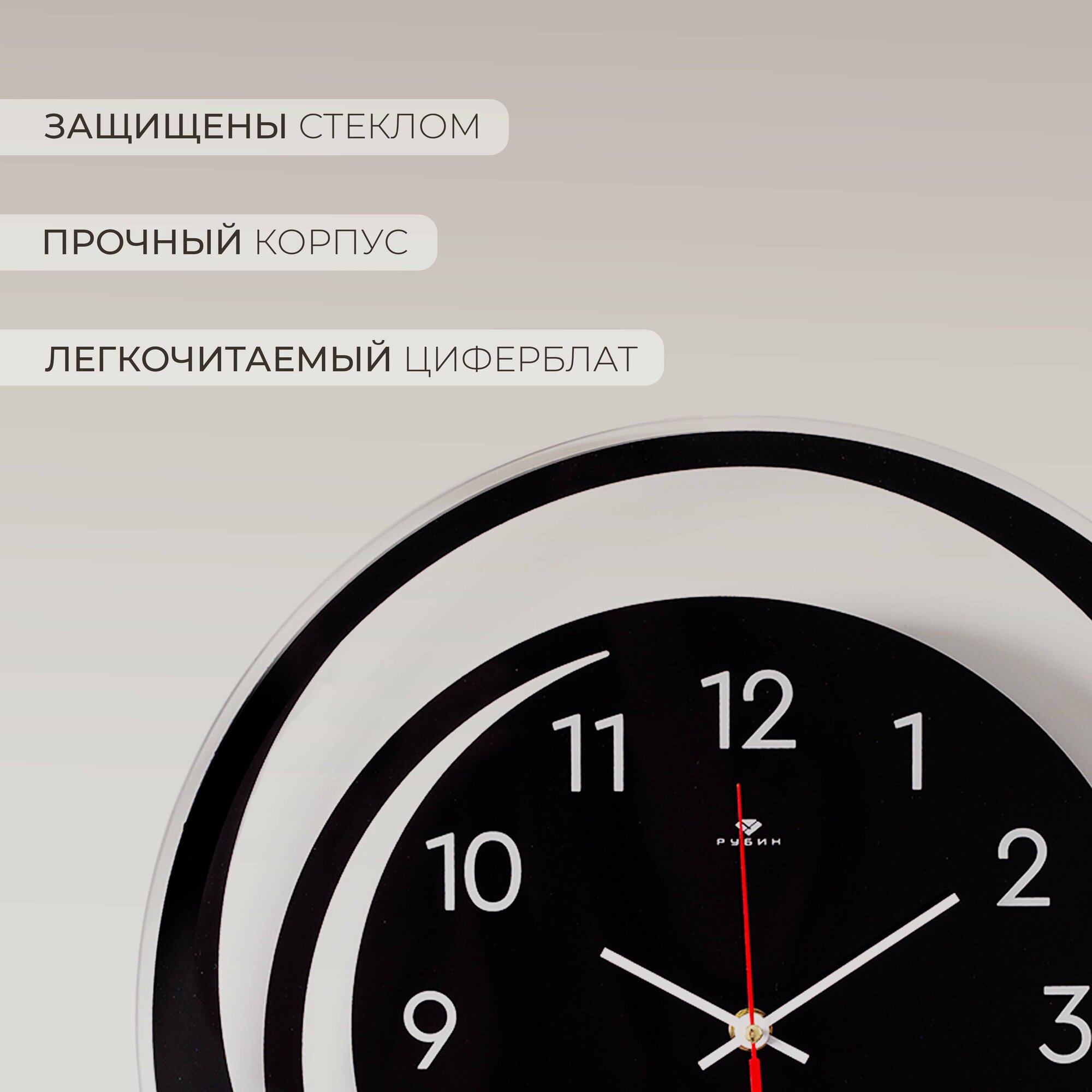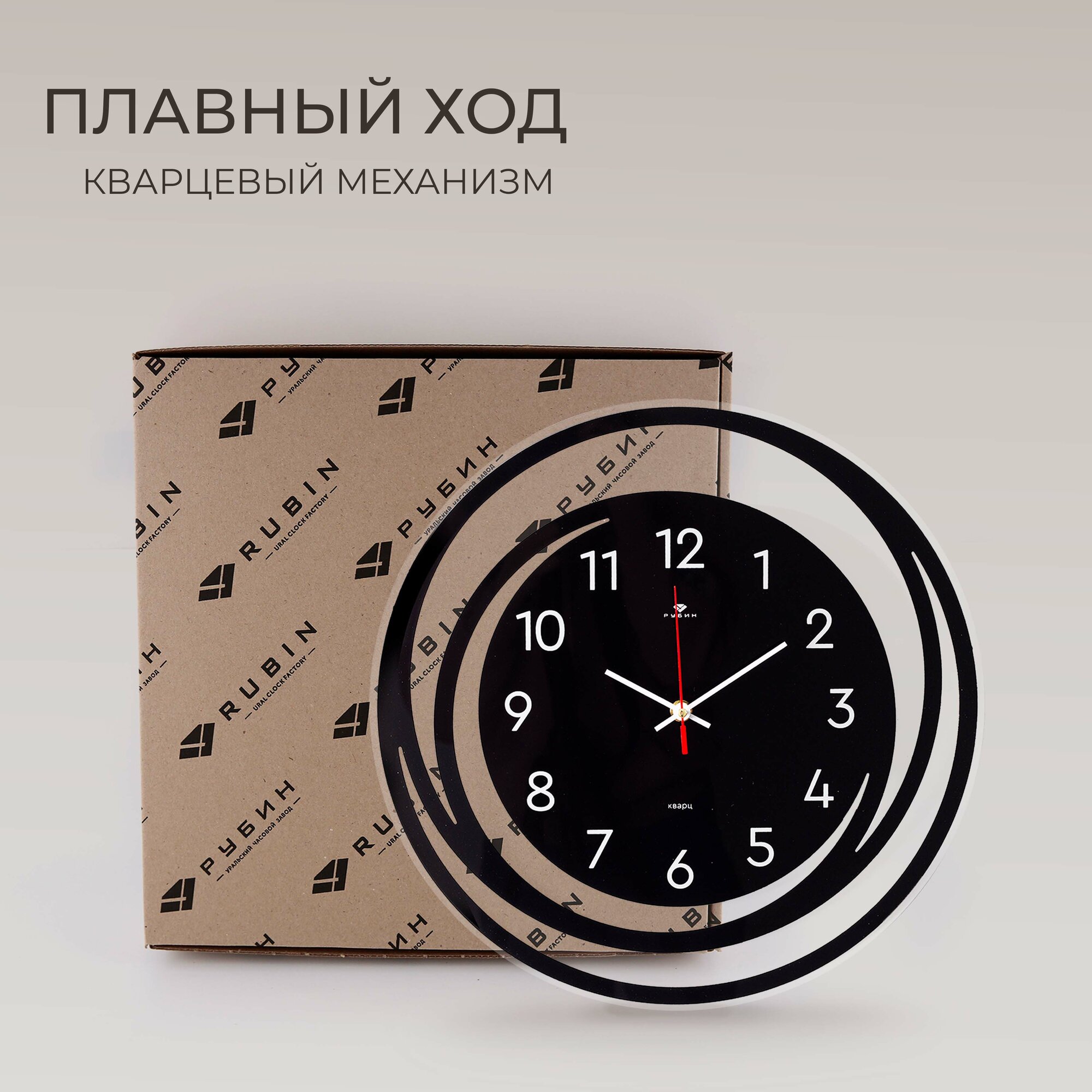 Часы настенные бесшумные Рубин, d 29 см кварцевые, плавный ход, пластик
