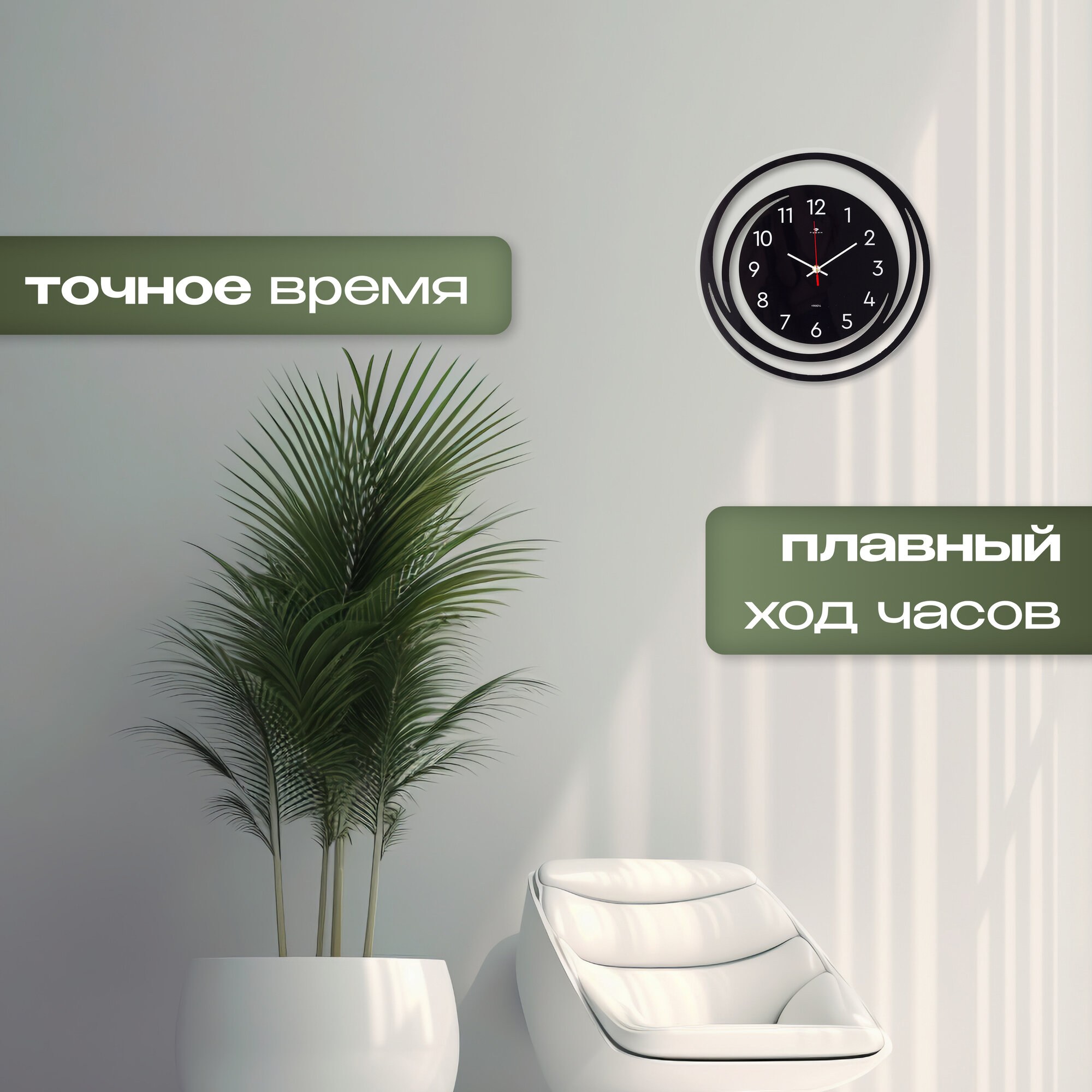Рубин Часы настенные круглые 45,5 см, часы на стену большие бесшумные