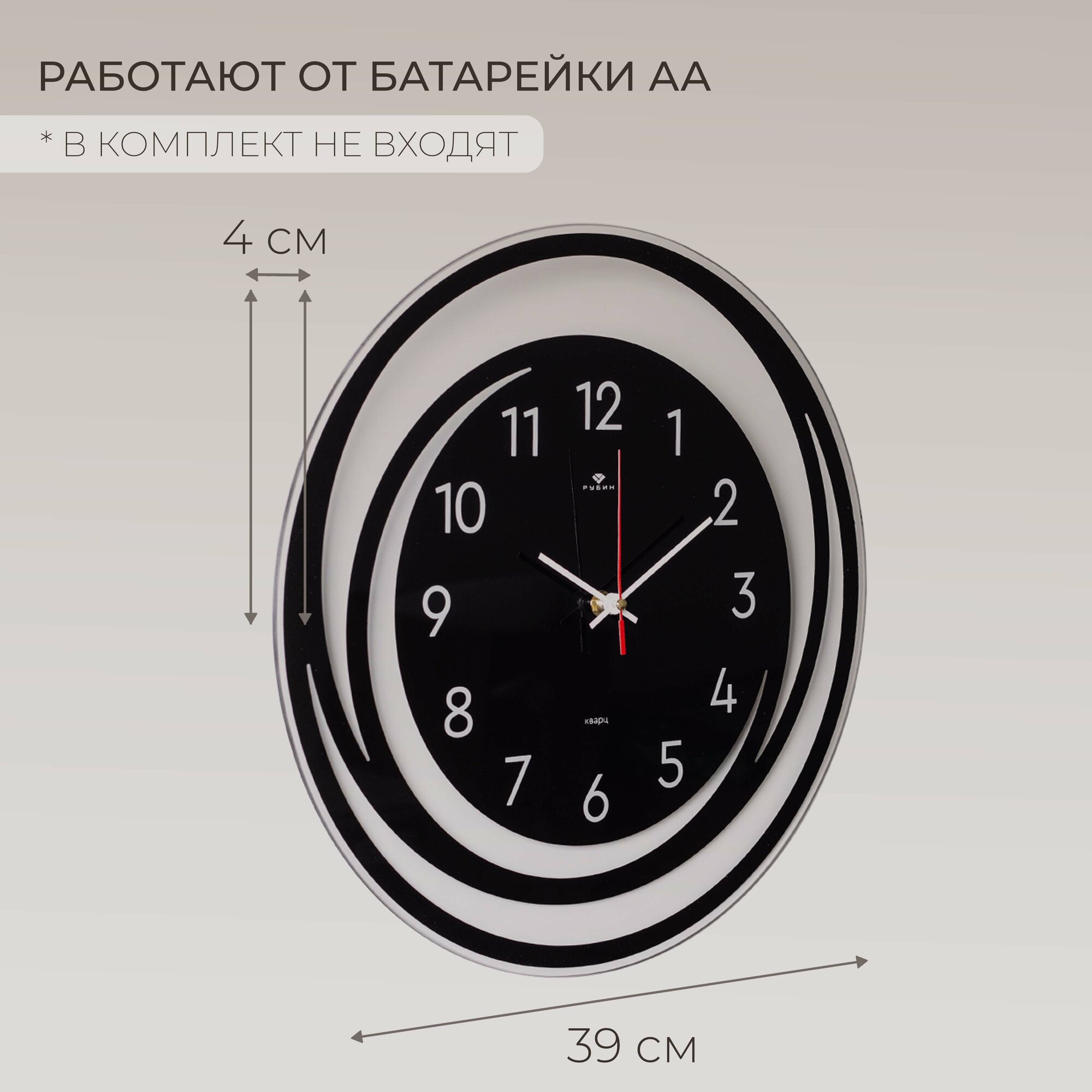 Часы большие настенные кварцевые овальные 29,5х38,5см Рубин с большими арабским цифрами для украшения интерьера