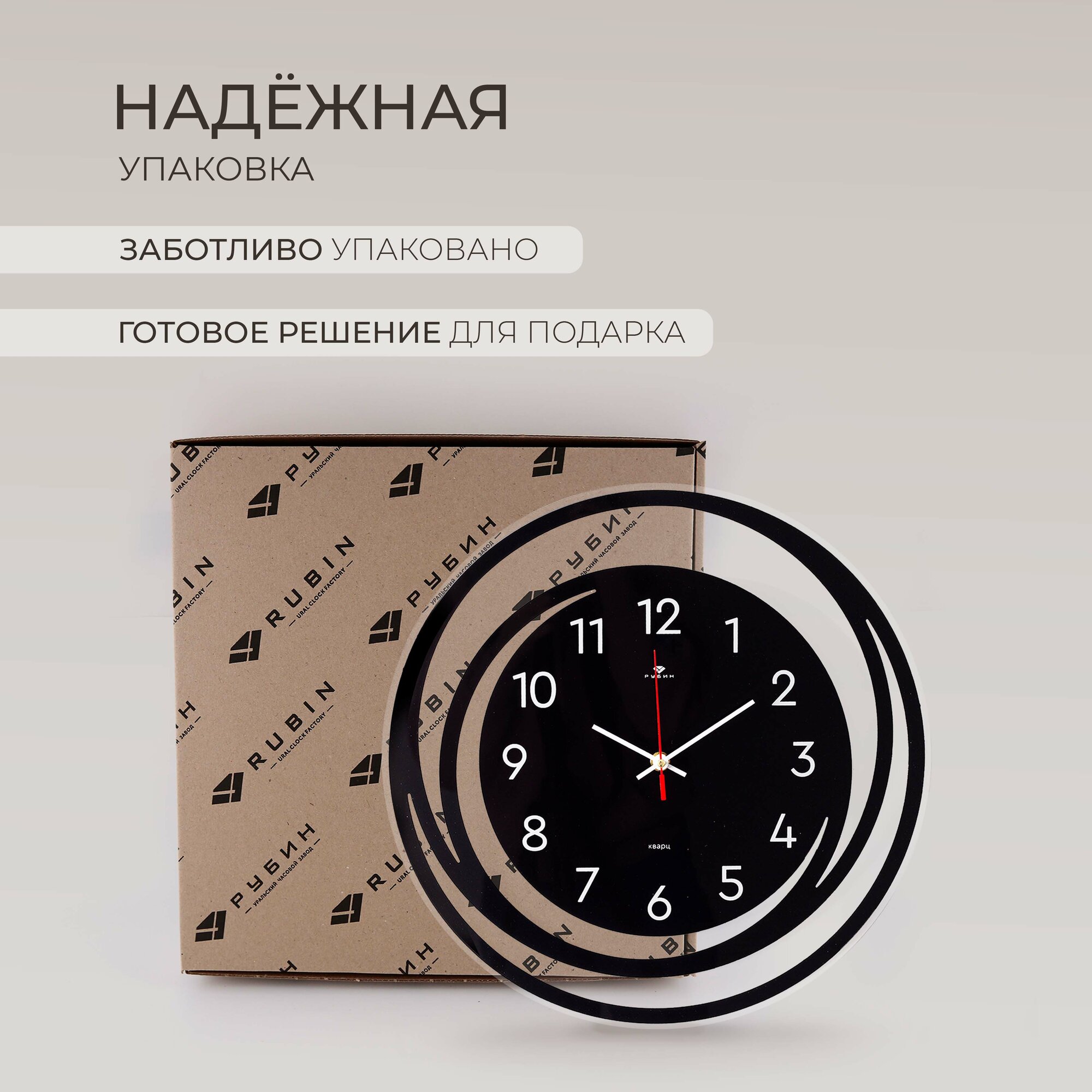 Стильные кварцевые часы в круглом корпусе Рубин Классика 3524-007 35 см с большими арабскими цифрами для украшения интерьера гостиной, спальни, кухни или офиса