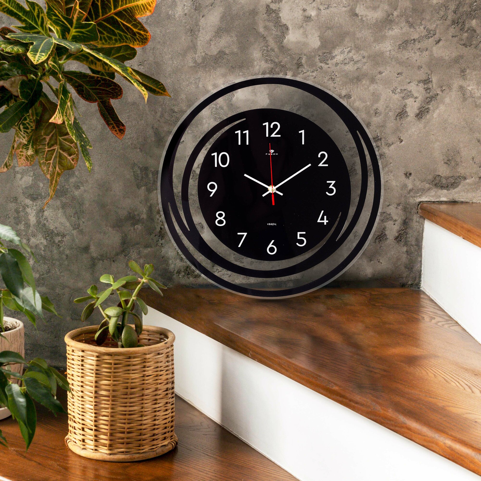 Часы настенные большие интерьерные Рубин 30см черные бесшумные