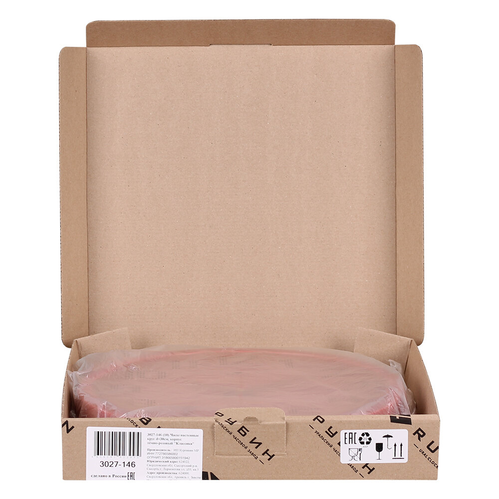 Часы настенные 3027-146 круг d30см, корпус тёмно-розовый "Классика"Рубин"