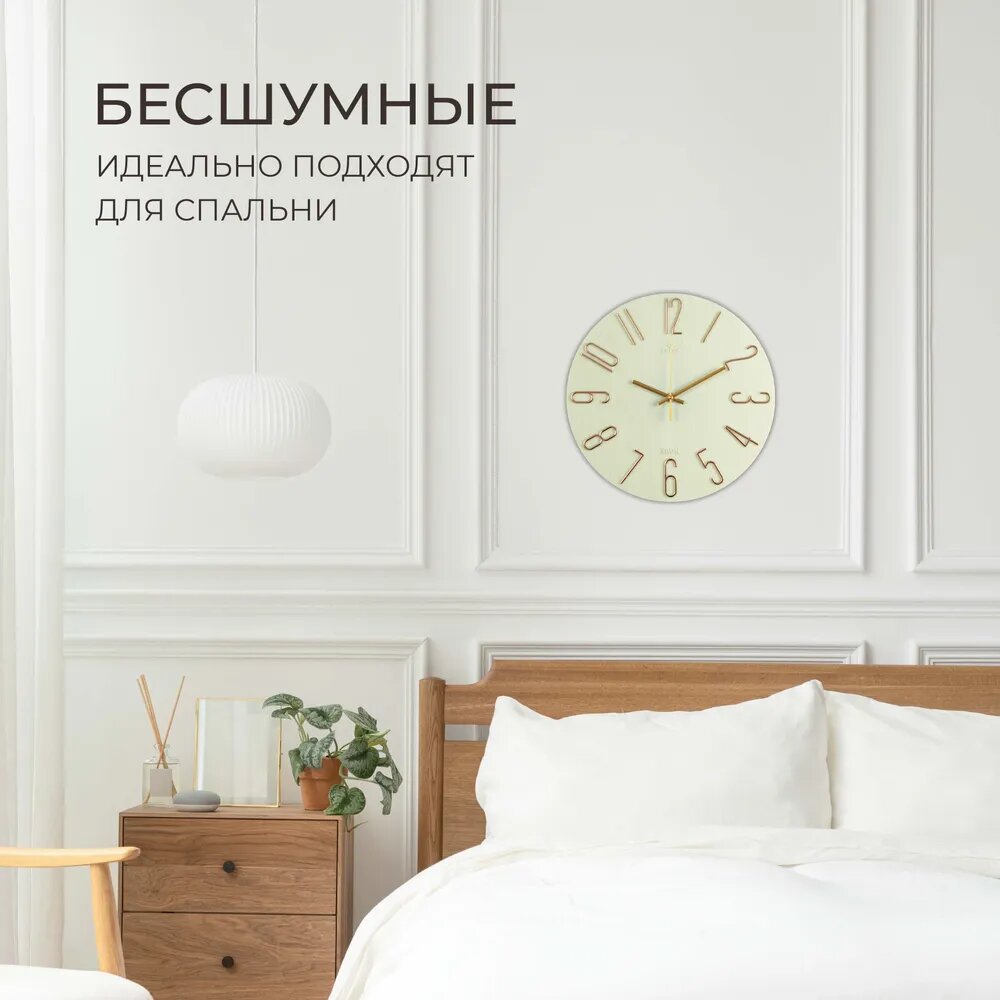 Часы настенные интерьерные, Рубин, часы бесшумные на кухню белые с золотым циферблатом 30 см